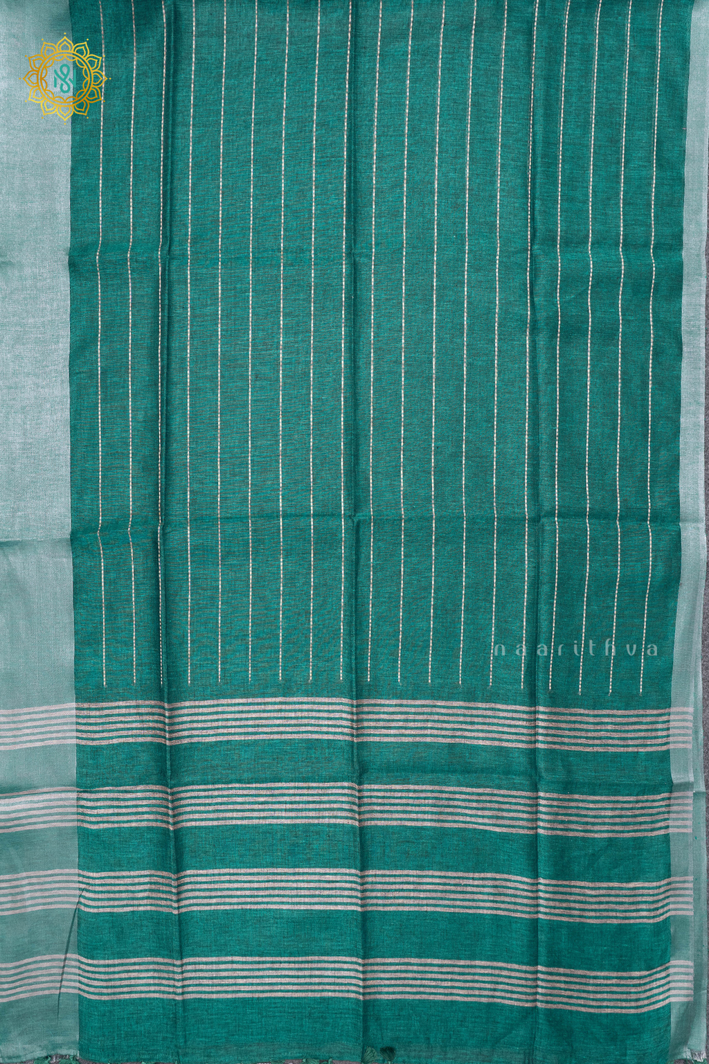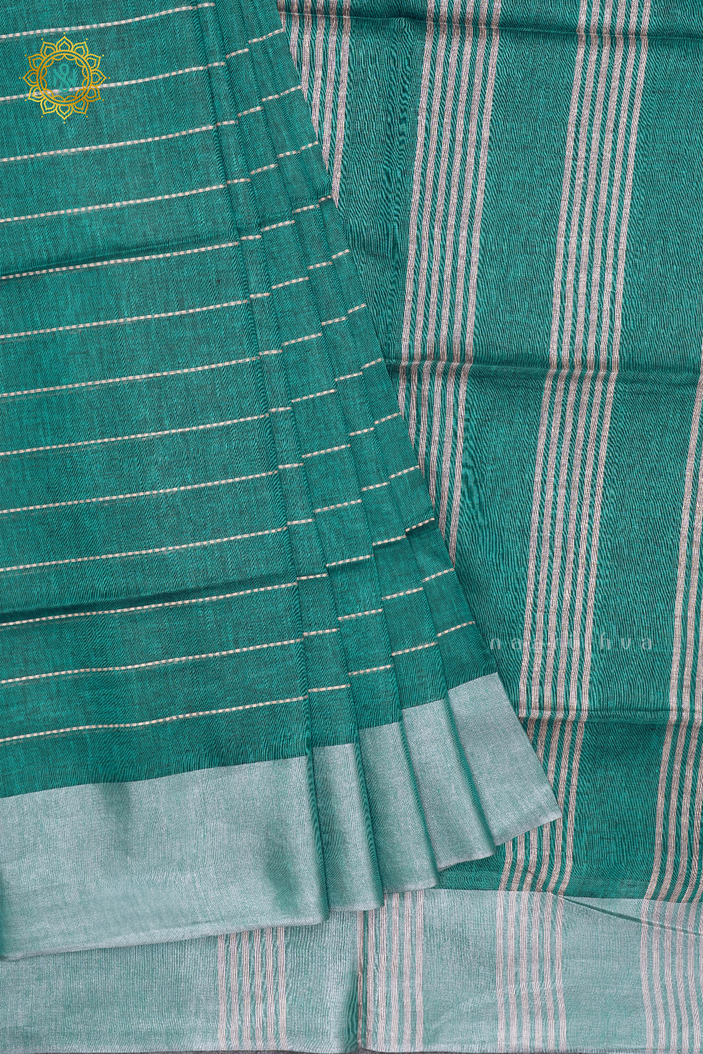 • Design : Stripes On The Body With Silver Woven Zari Border, Pallu & Blouse