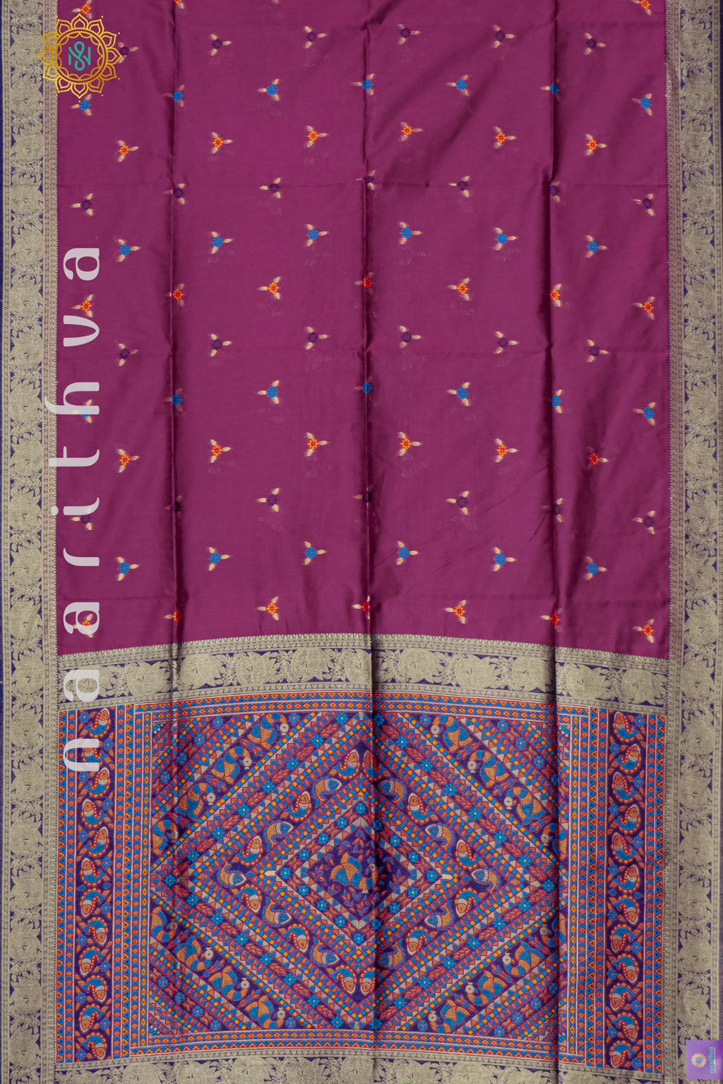 MAGENTA WITH NAVY BLUE - SILK COTTON