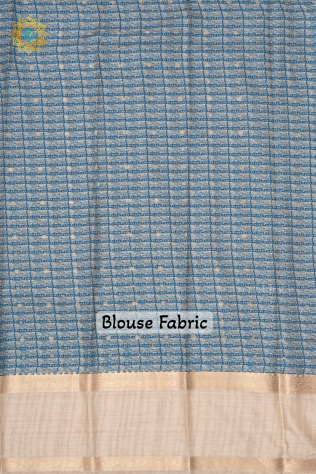 TEAL BLUE WITH BEIGE - SEMI TUSSAR SILK