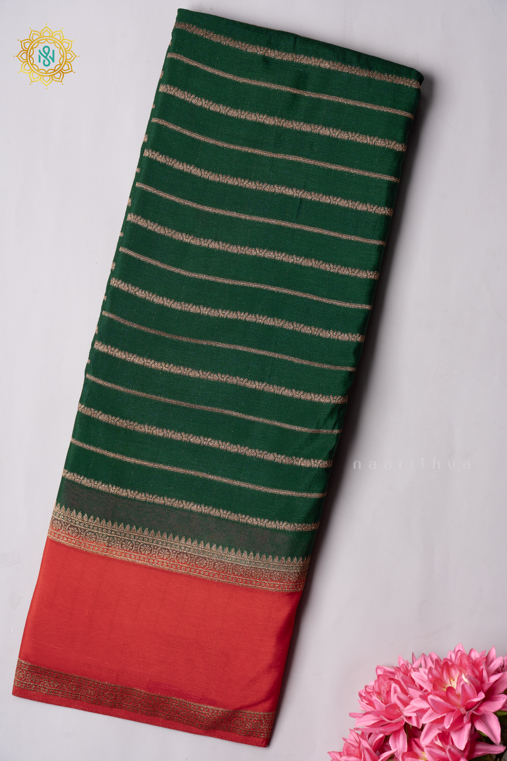 BOTTLE GREEN WITH RED - SEMI CREPE GEORGETTE