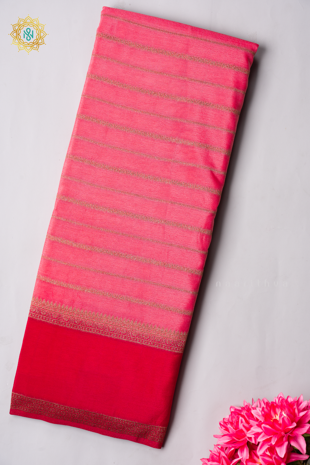 PEACHISH PINK WITH RANI PINK - SEMI CREPE GEORGETTE