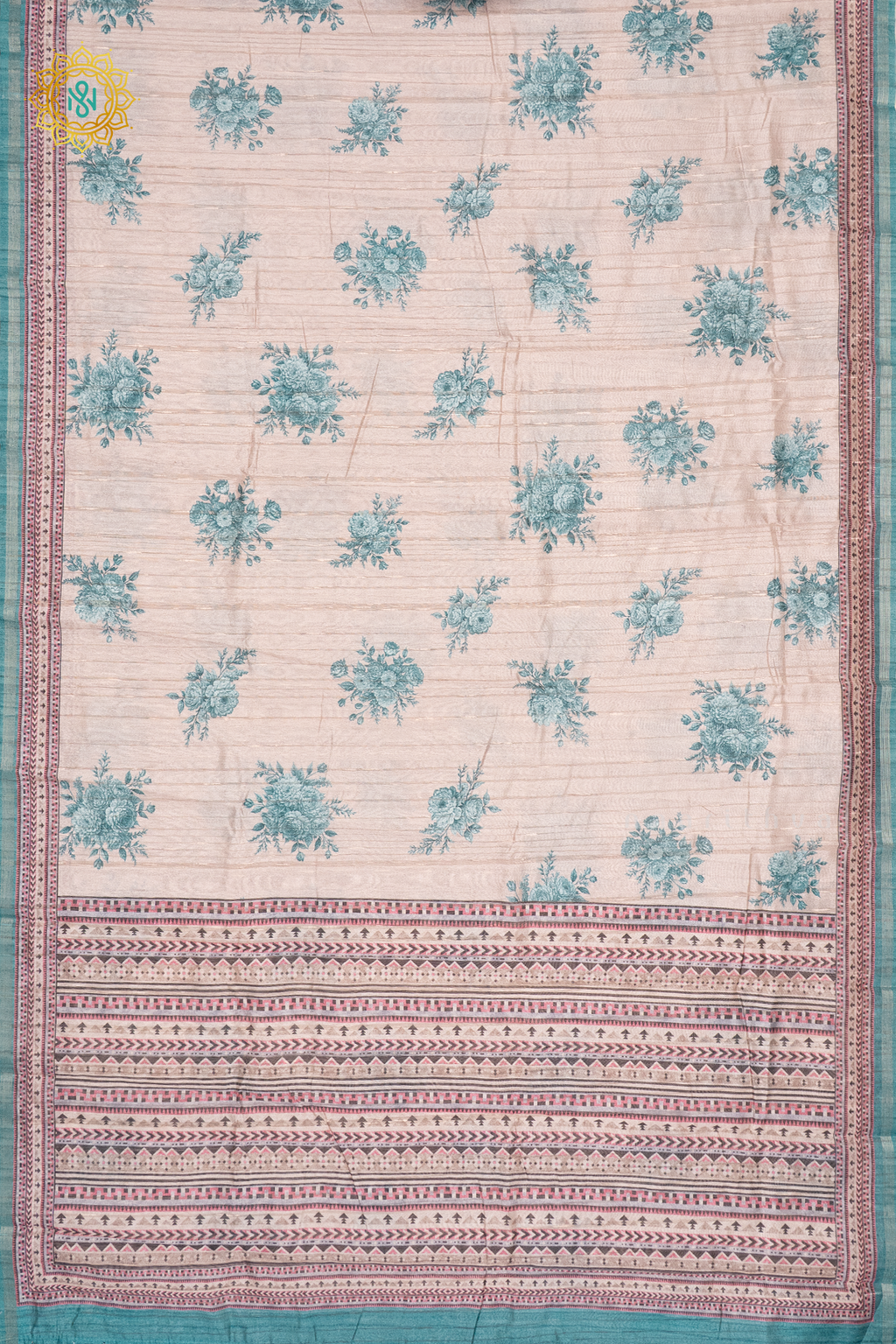 BEIGE WITH AQUA GREEN - SEMI TUSSAR