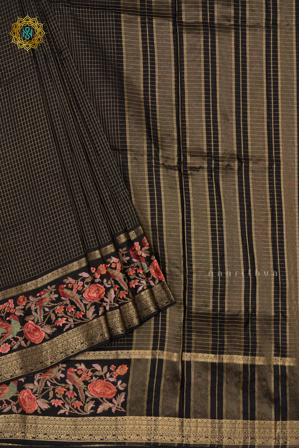 • Design : Zari Checks Body With Embroidery Zari Border, Pallu & Blouse