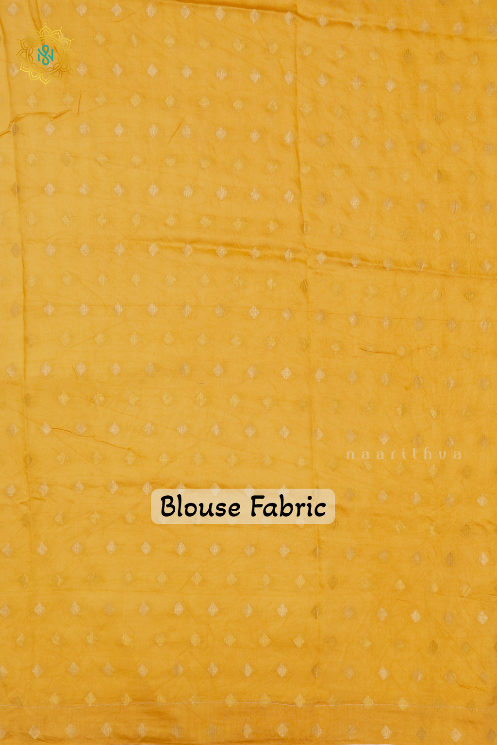 • Design : Zari Buttas On The Body With Contrast Printed Zari Border, Pallu & Blouse