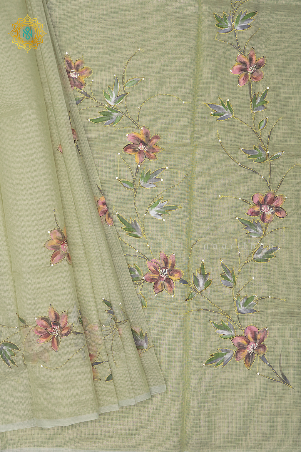 GREEN - KOTA TISSUE WITH KATHA WORK