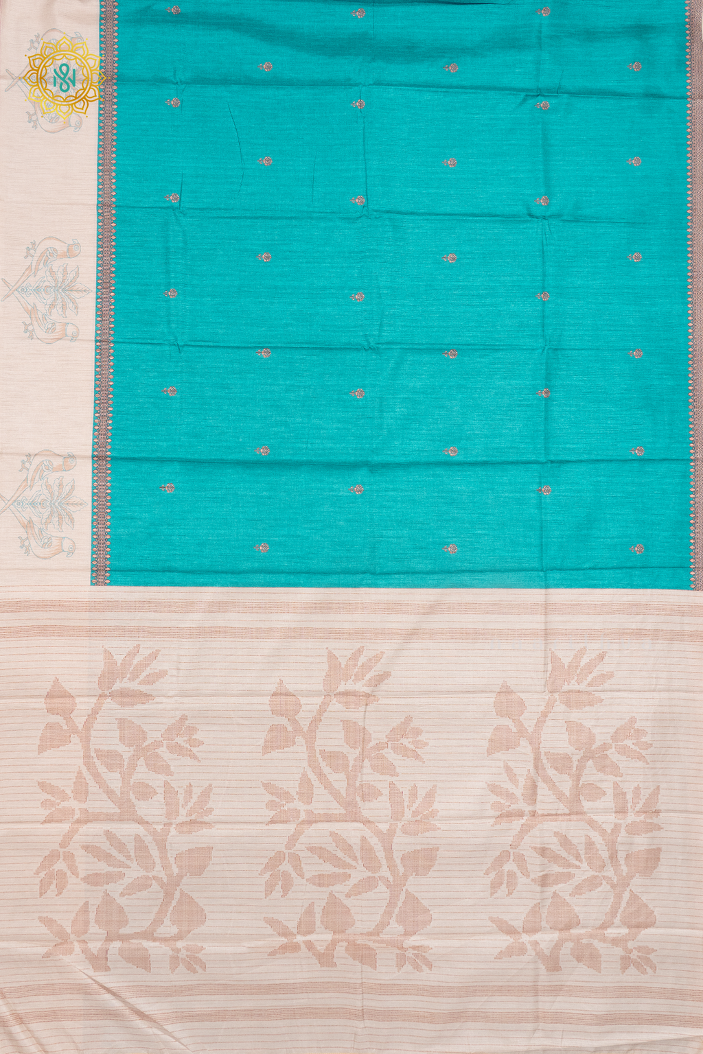 AQUA BLUE WITH OFF WHITE - SEMI TUSSAR