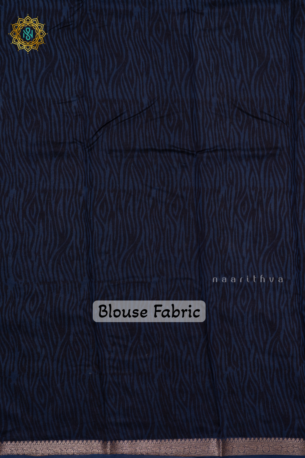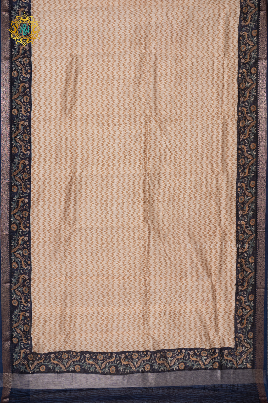 OFF WHITE WITH NAVY BLUE - CHANDERI SLK COTTON