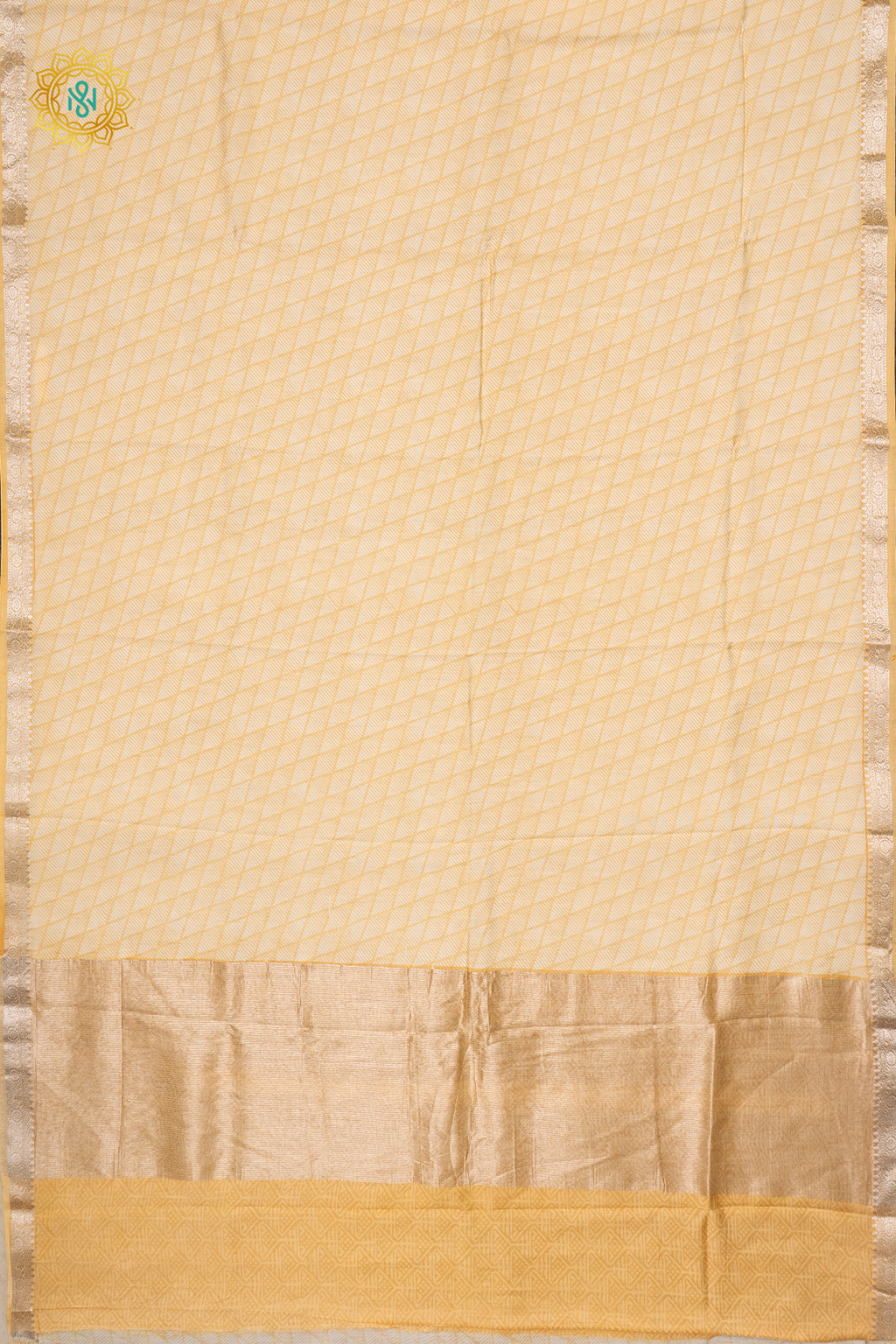 • Design :Printed Body With Zari Border, Pallu & Blouse