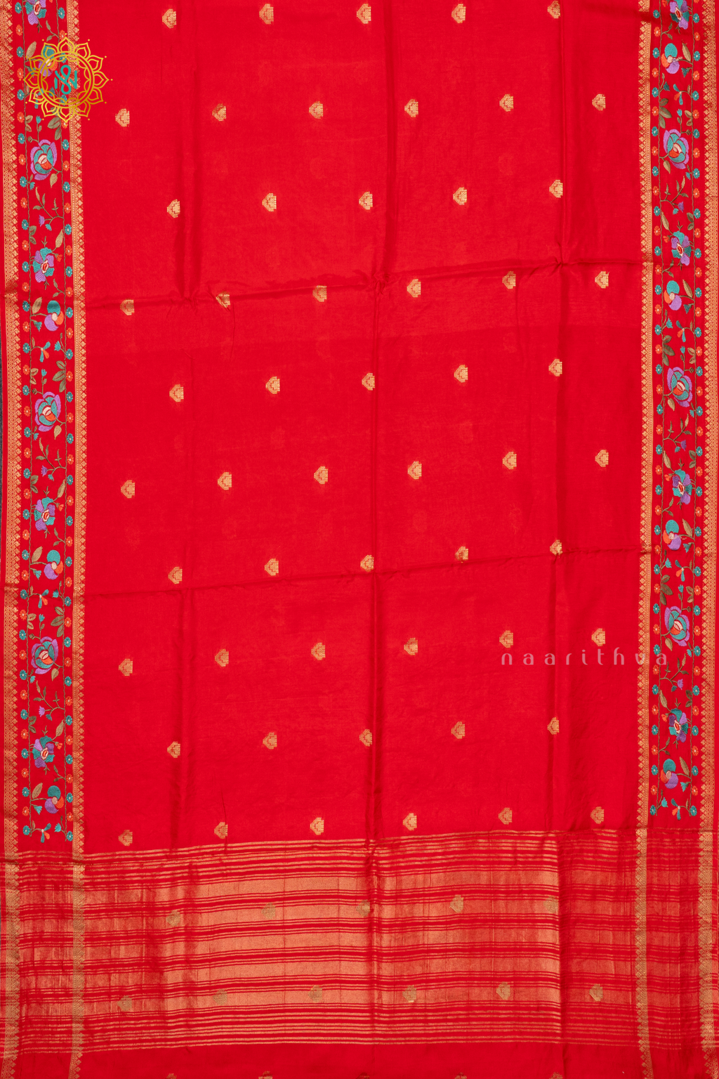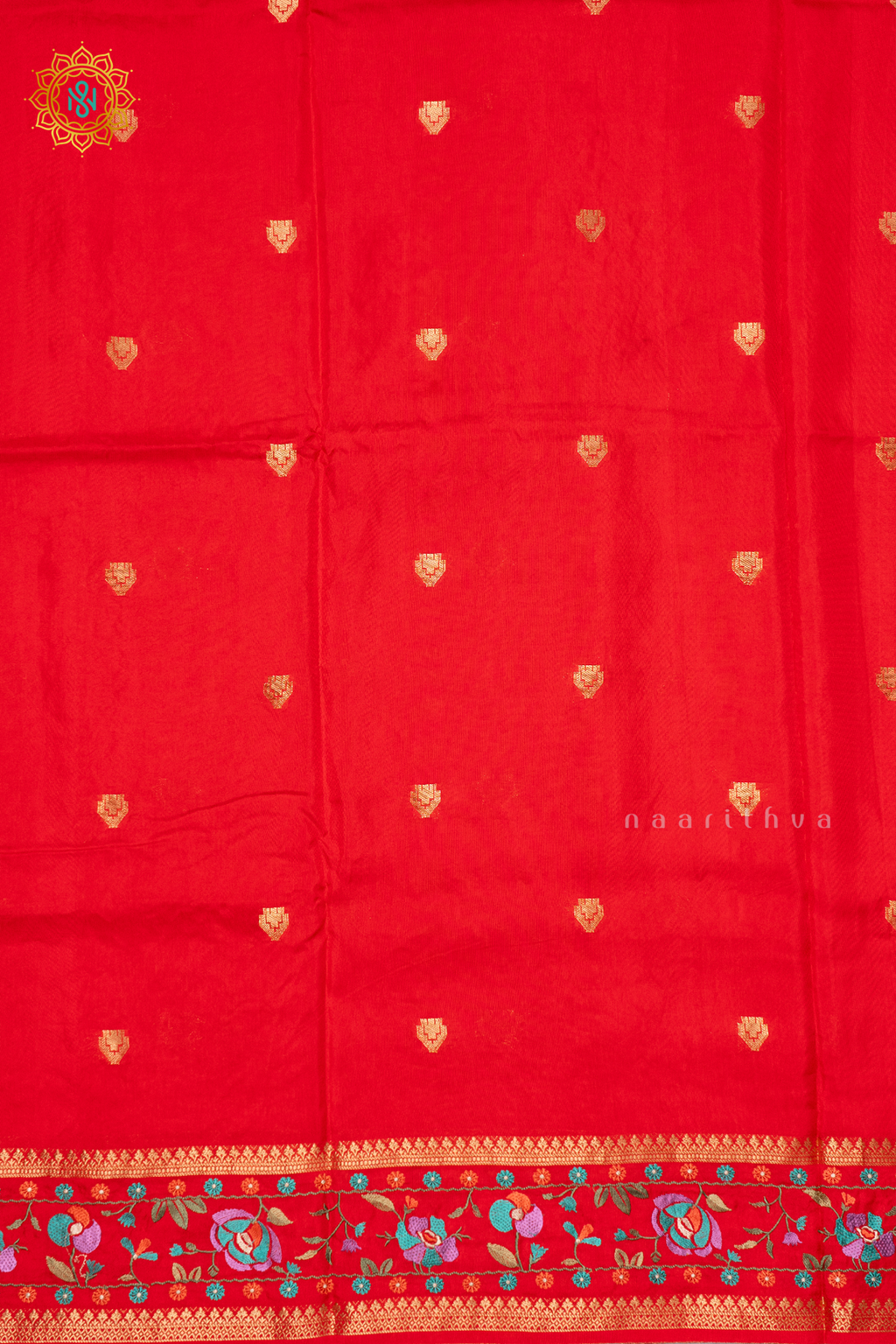 RED - SEMI CREPE SILK WITH EMBROIDERY