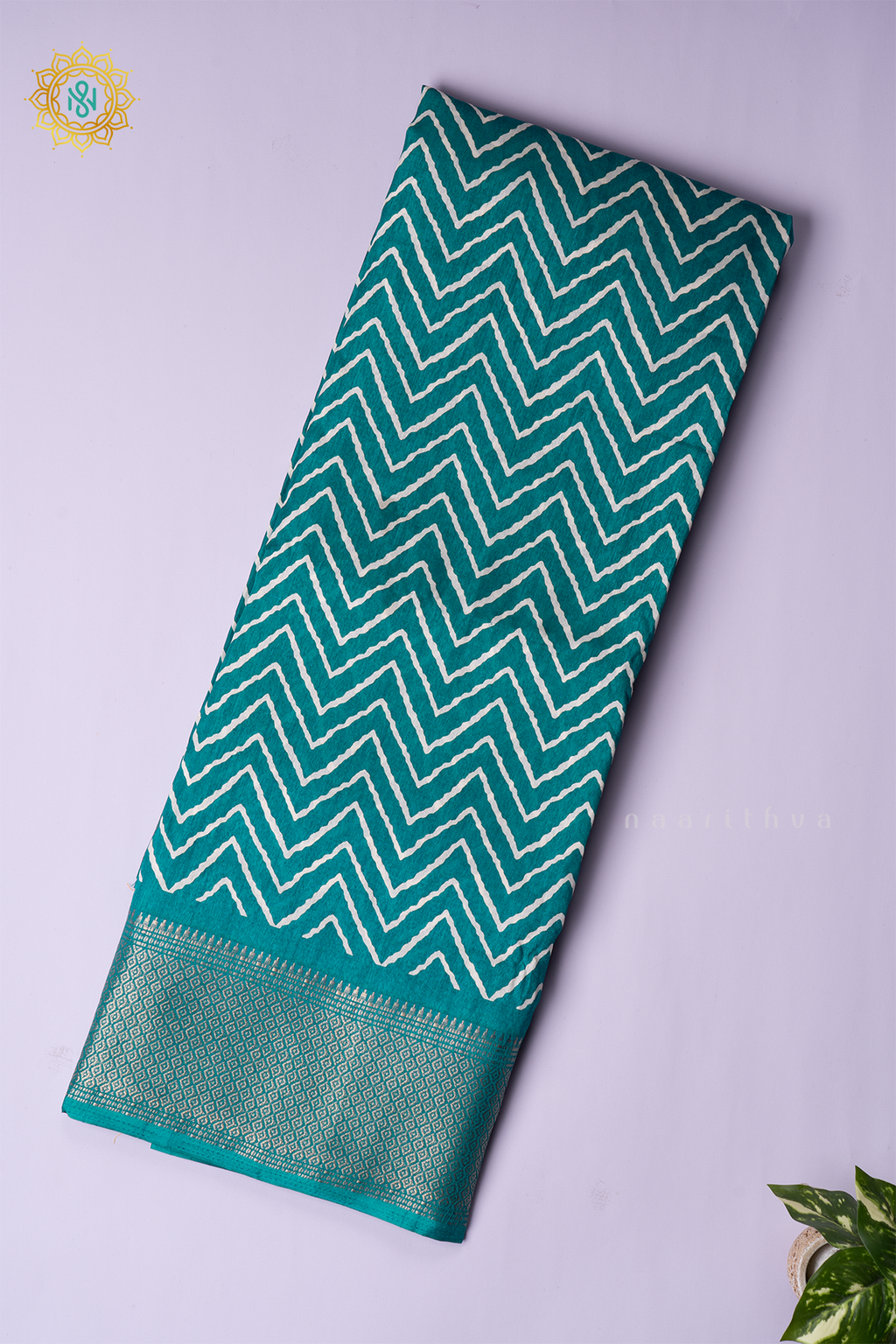 • Design : Printed Body With Zari Border, Pallu & Blouse