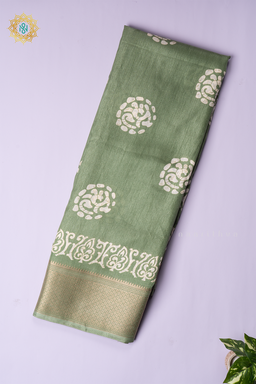 • Design : Printed Body With Zari Border, Pallu & Blouse