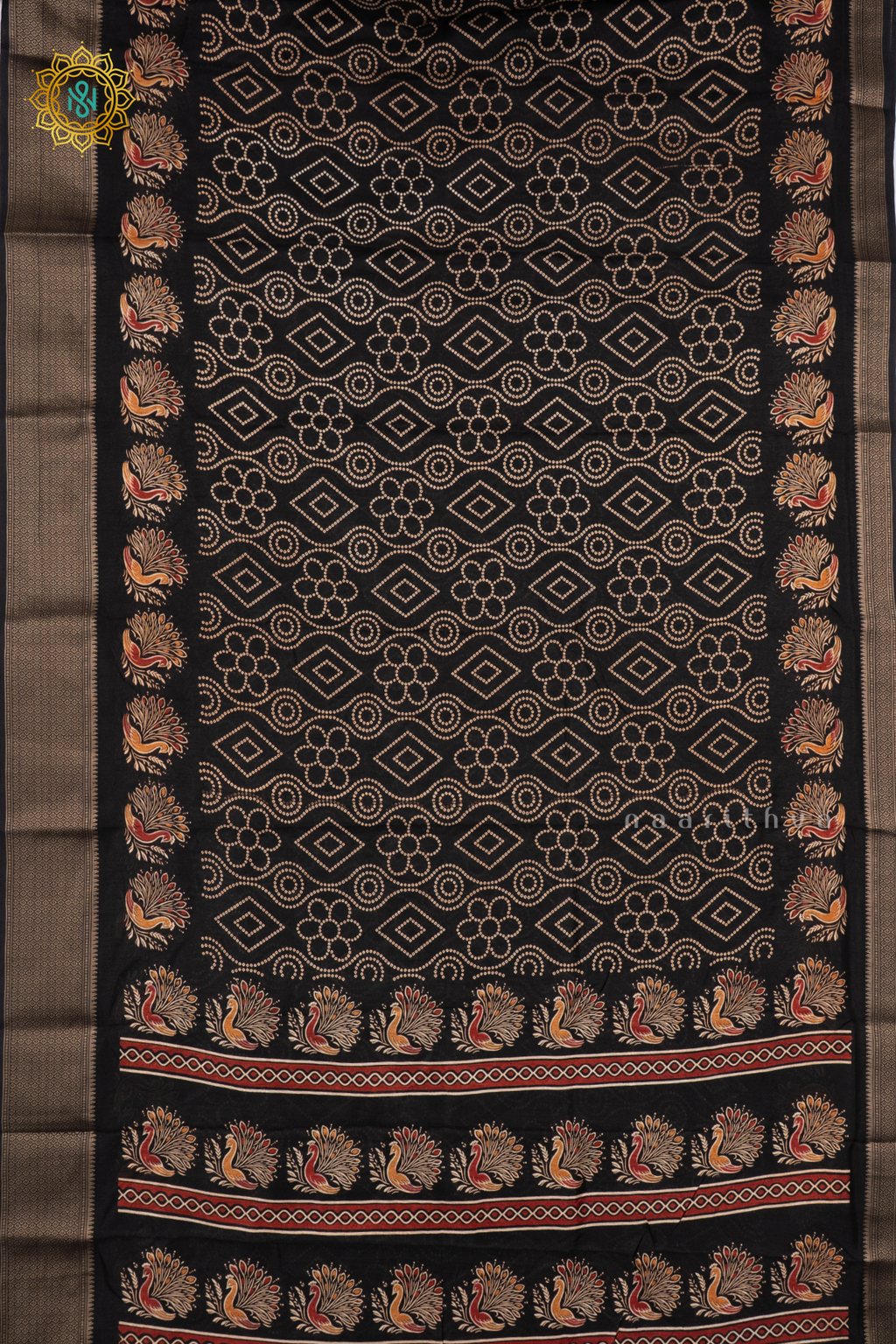 • Design : Printed Body With Zari Border, Pallu & Blouse