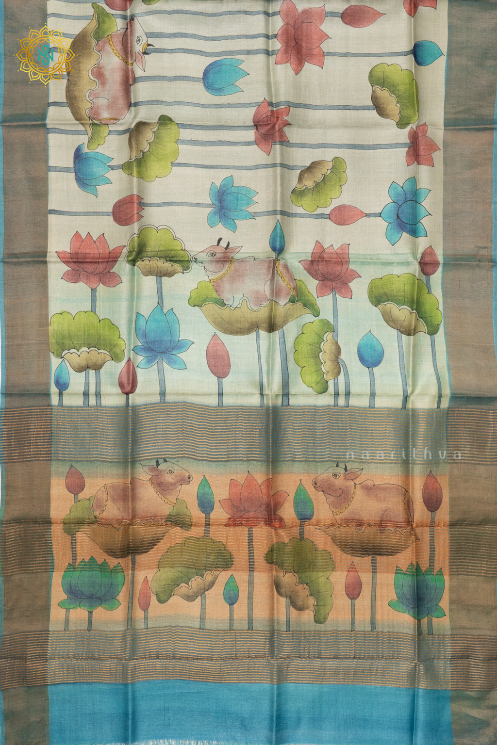 AQUA BLUE WITH SKY BLUE - PURE TUSSAR SILK