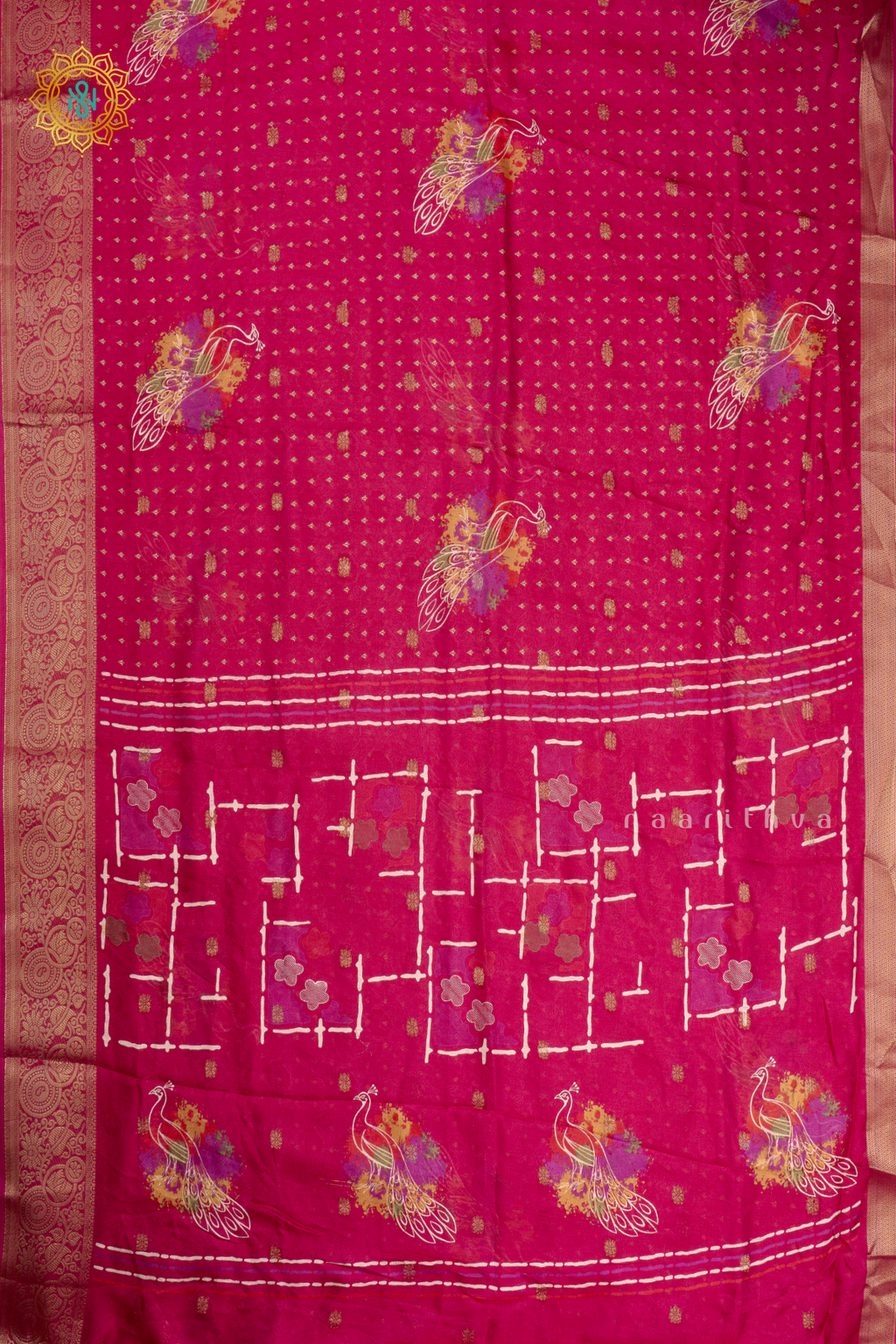 • Design :  Zari Buttas & Printed Body With Zari Border, Pallu & Blouse