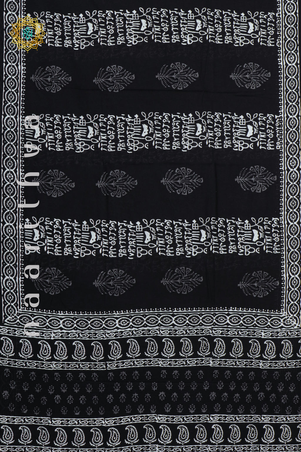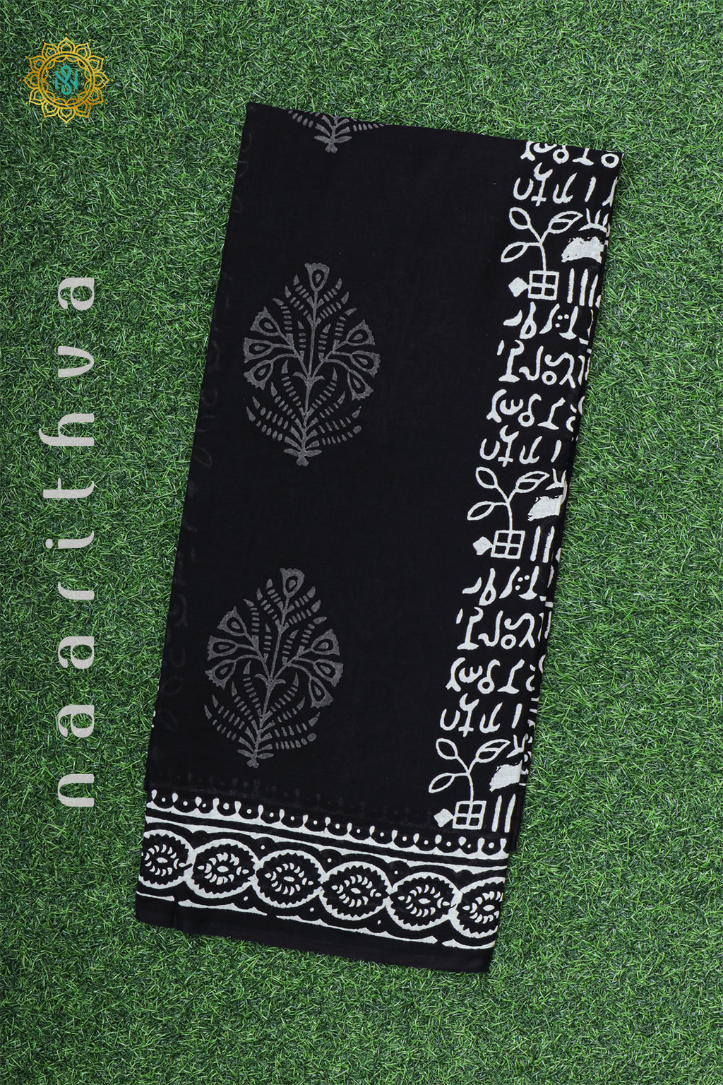 • Design : Block Prints On The Body With Contrast Border, Pallu & Blouse