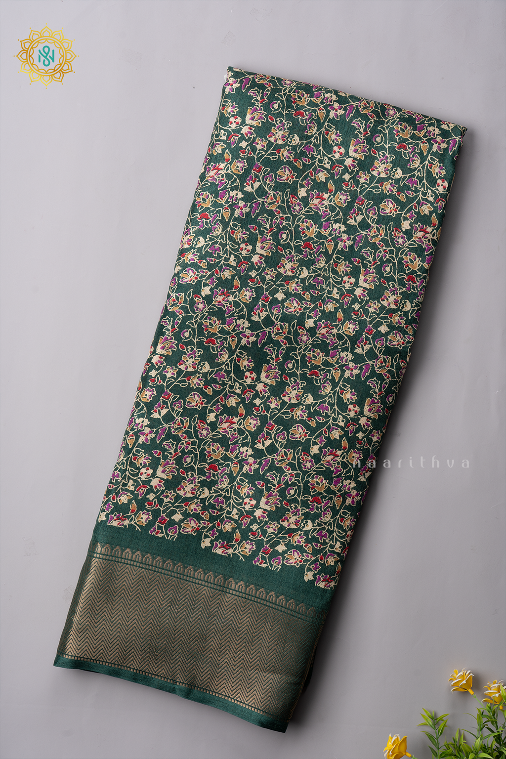 • Design : Printed Body With Zari Border, Pallu & Blouse