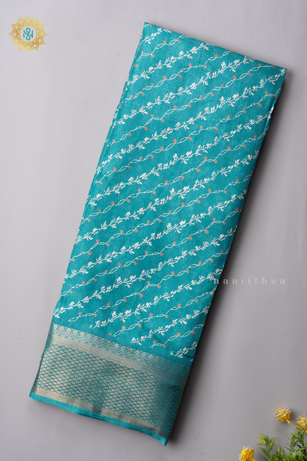 • Design : Printed Body With Zari Border, Pallu & Blouse