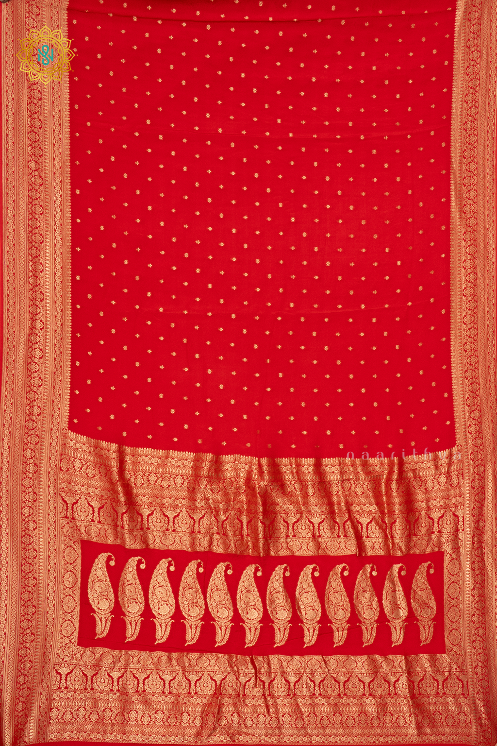 • Design : Zari Buttas On The Body With Zari Border, Pallu & Blouse