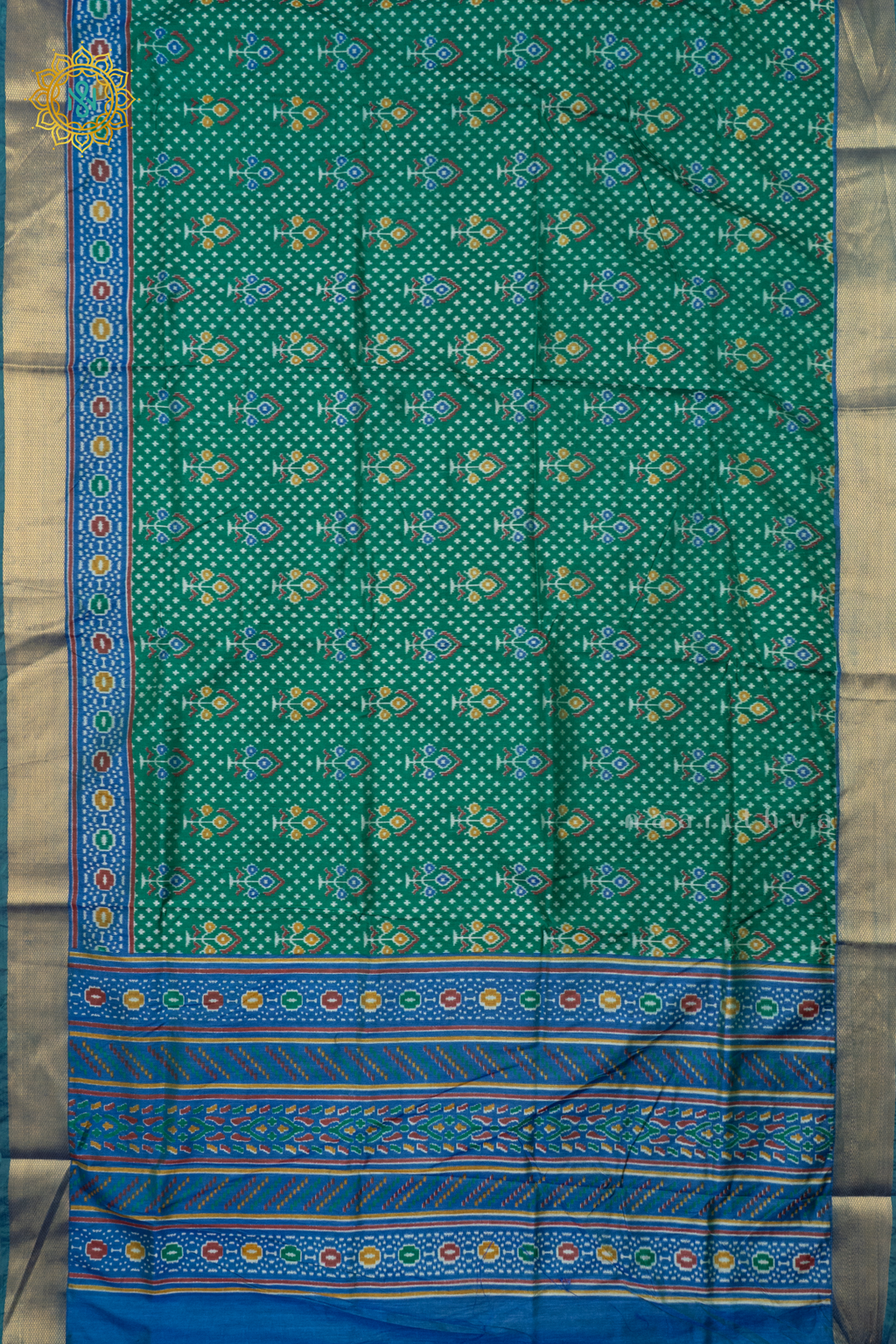GREEN WITH SKY BLUE - SEMI PATOLA SILK
