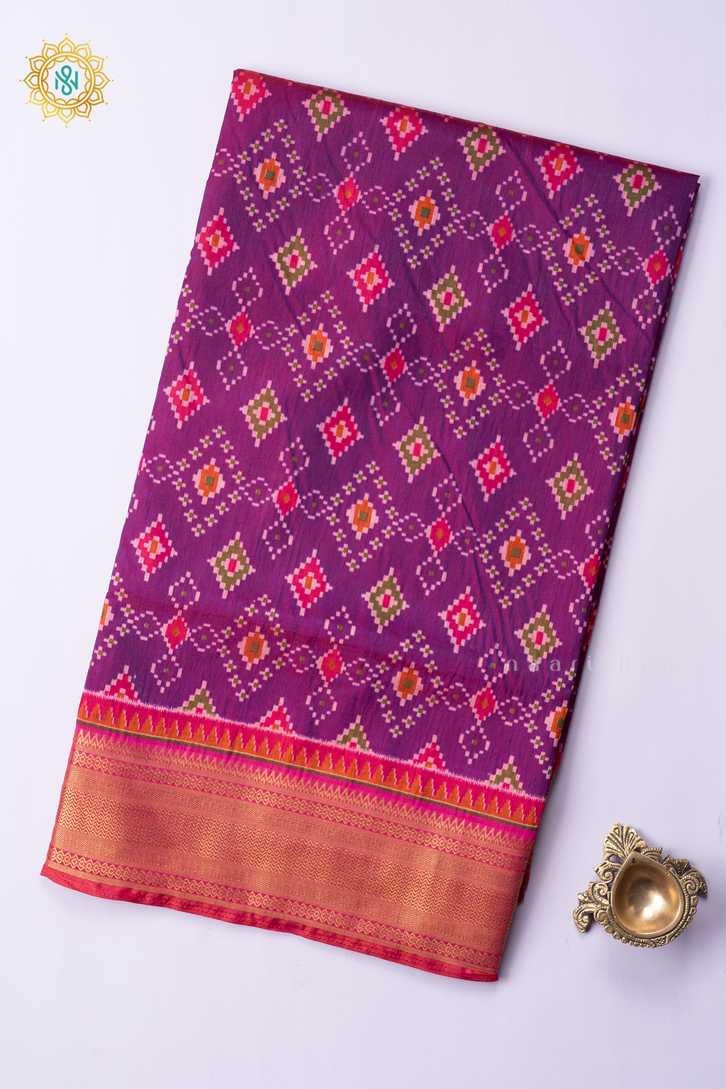 • Design : Patola Printed Body With Contrast Zari Border, Pallu & Blouse
