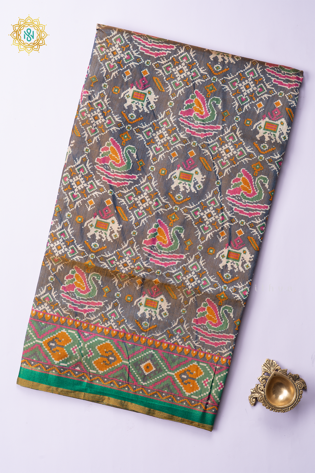 • Design : Patola Printed Body With Contrast Zari Border, Pallu & Blouse