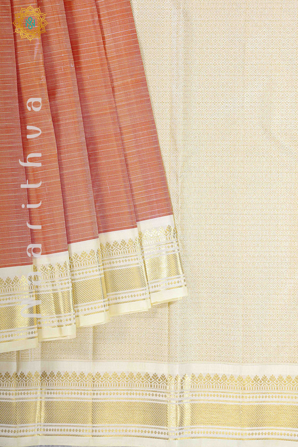 LIGHT ORANGE WITH CREAM - PURE KANJIVARAM SILK