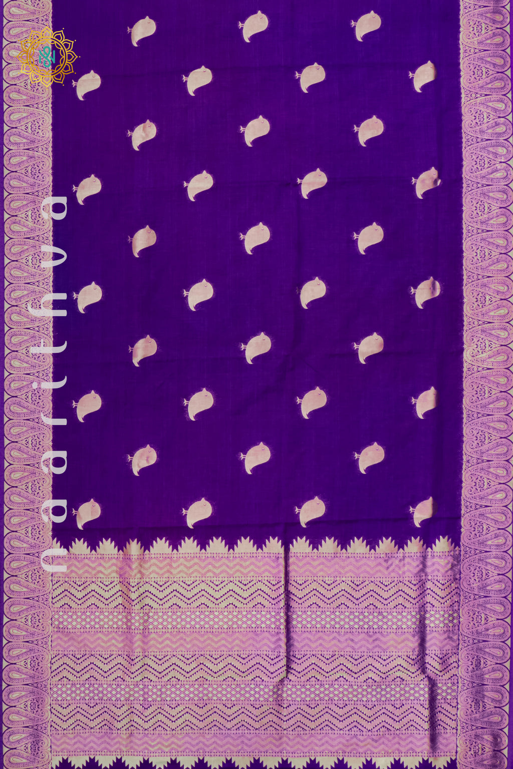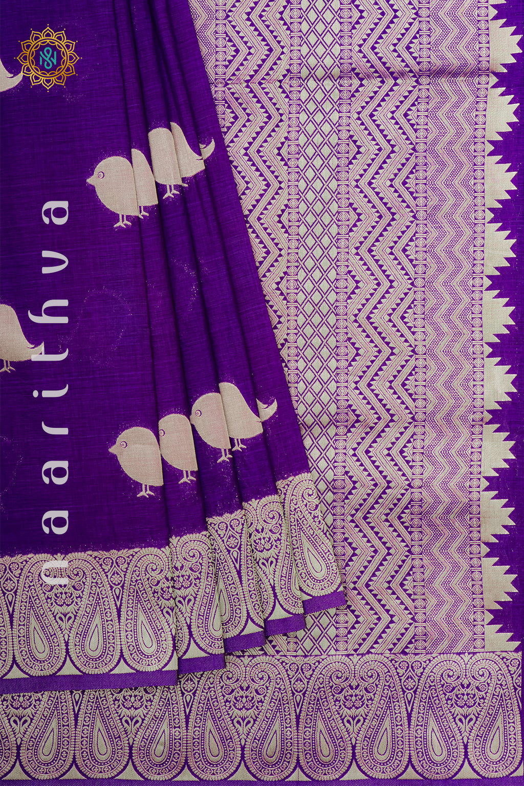 • Design : Zari Bird Buttas On The Body With Zari Border, Pallu & Blouse