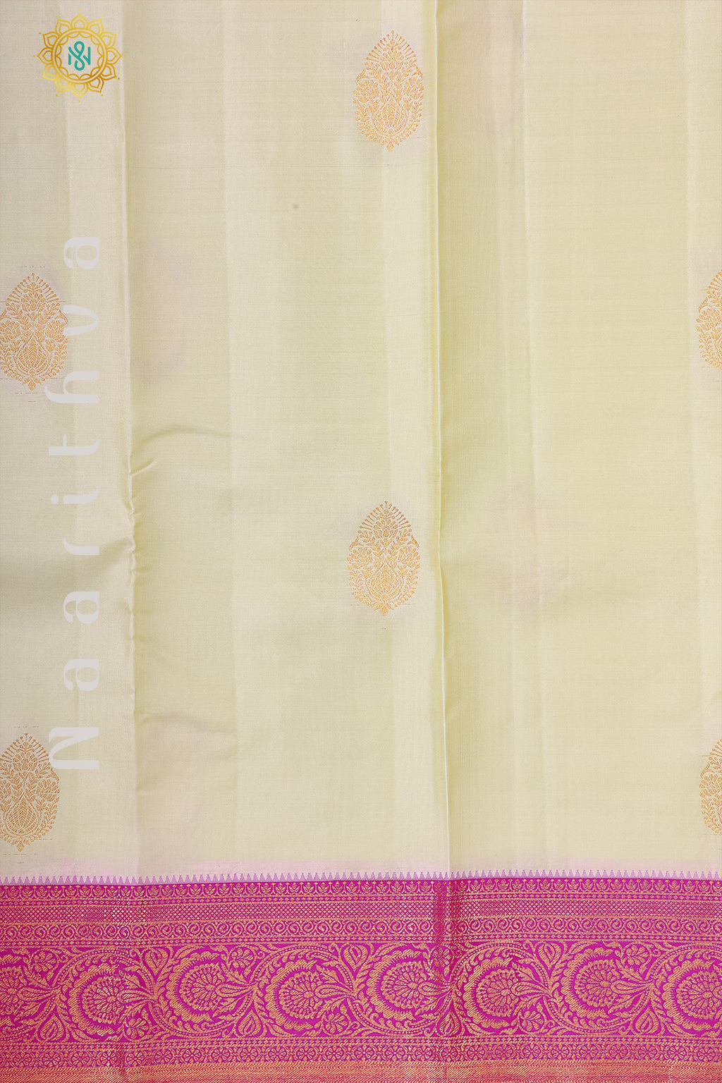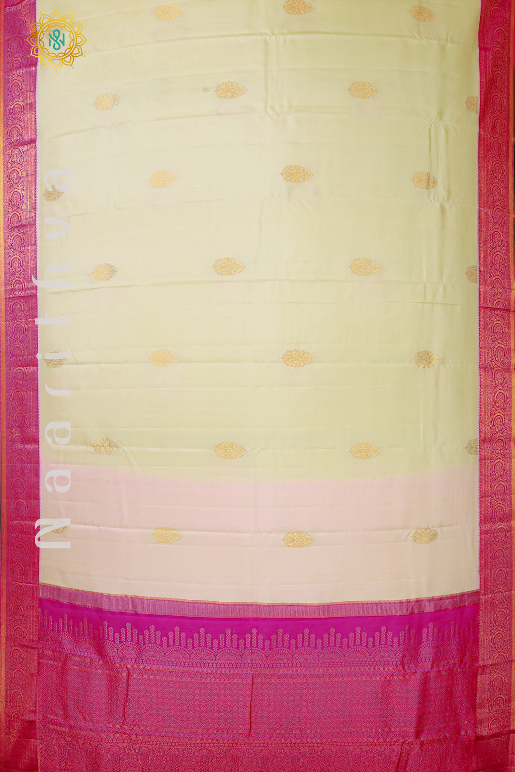 • Design : Zari Woven Buttas On The Body With Contrast Zari Border, Pallu & Blouse