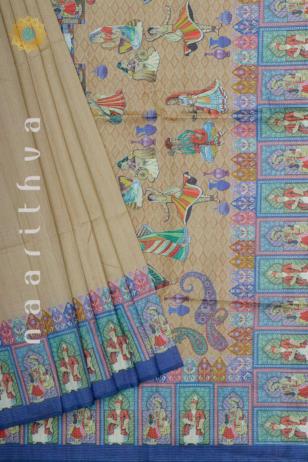 OFF WHITE WITH BLUE - SEMI TUSSAR