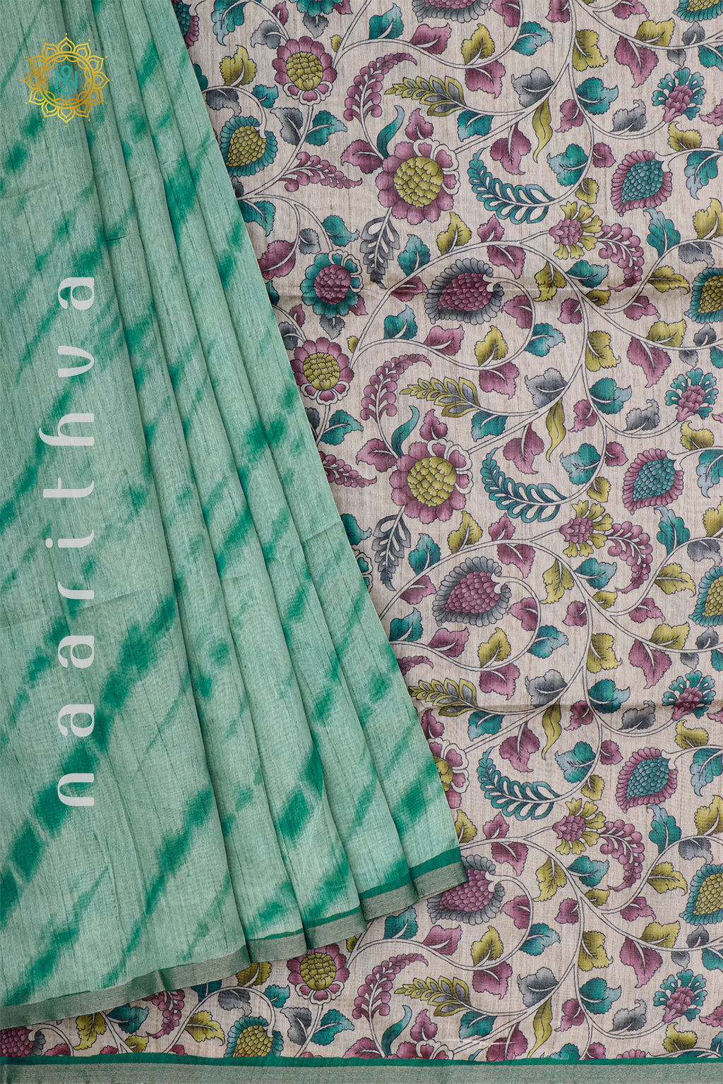 • Design : Shibori Dye On The Body With Printed Pallu & Contrast Blouse