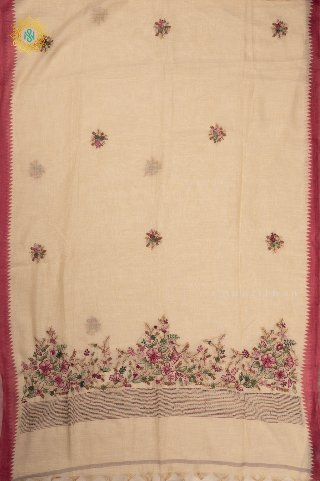 WHITE WITH MAROON - LINEN TISSUE
