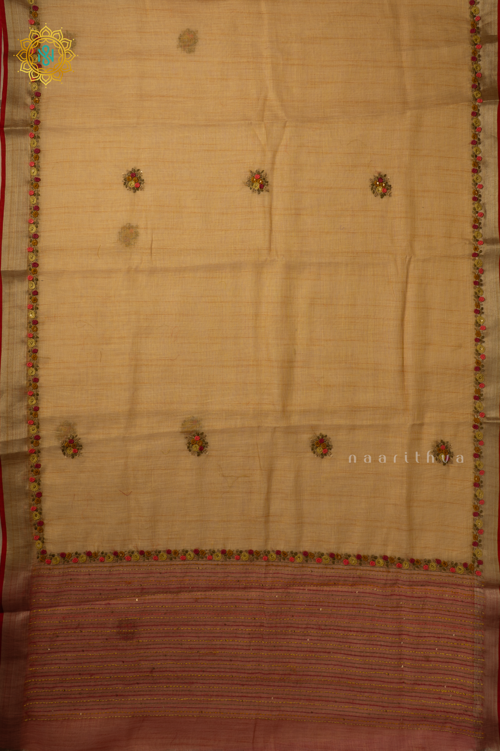 • Design : Embroidery Buttas On The Body With Tissue Border, Pallu & Blouse