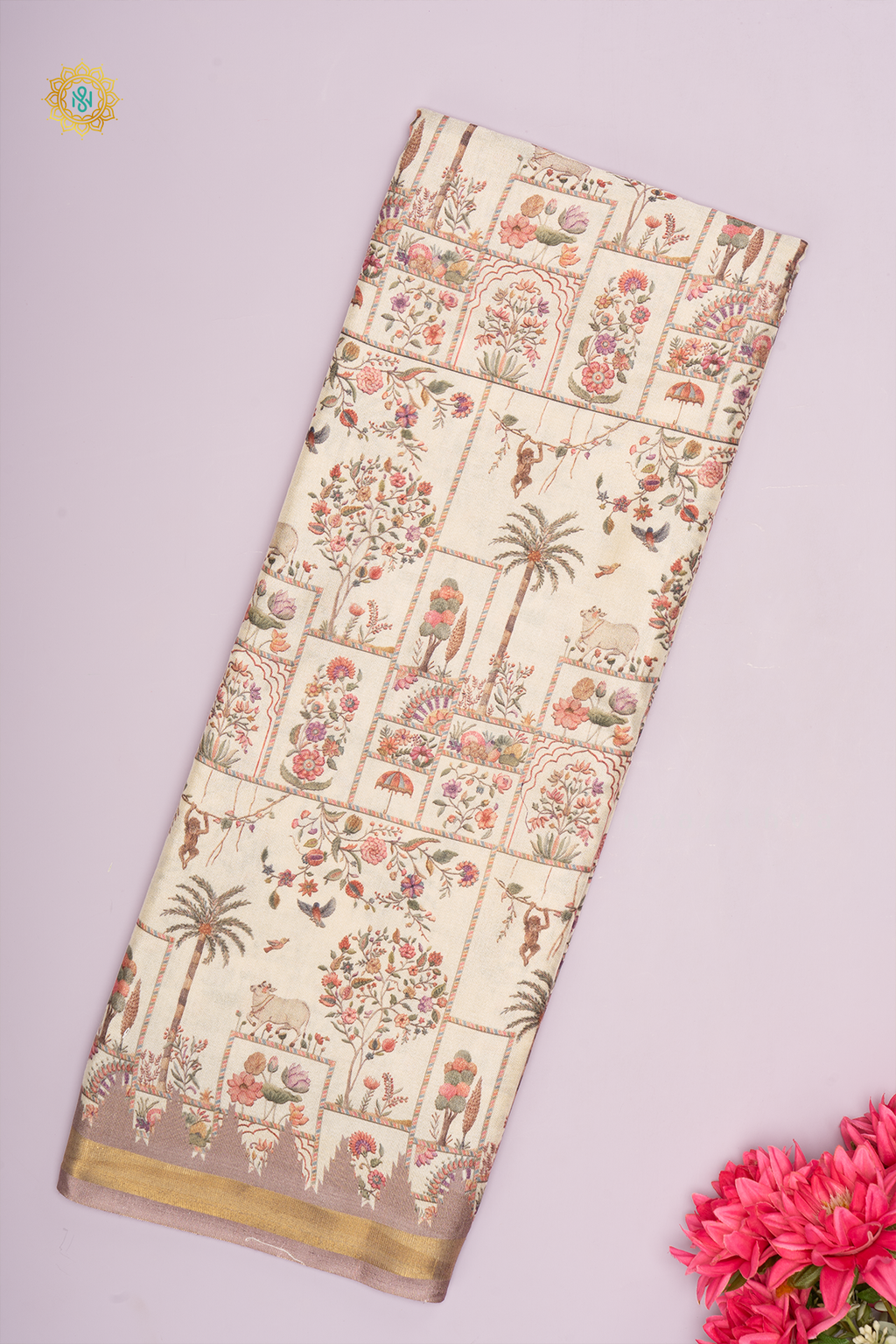 OFF WHITE WITH MAUVE - SOFT TUSSAR