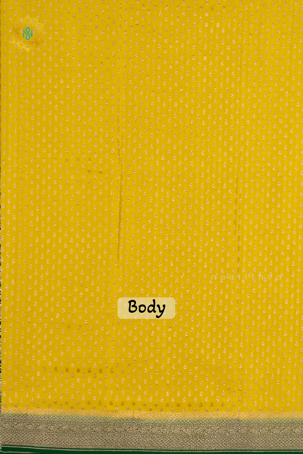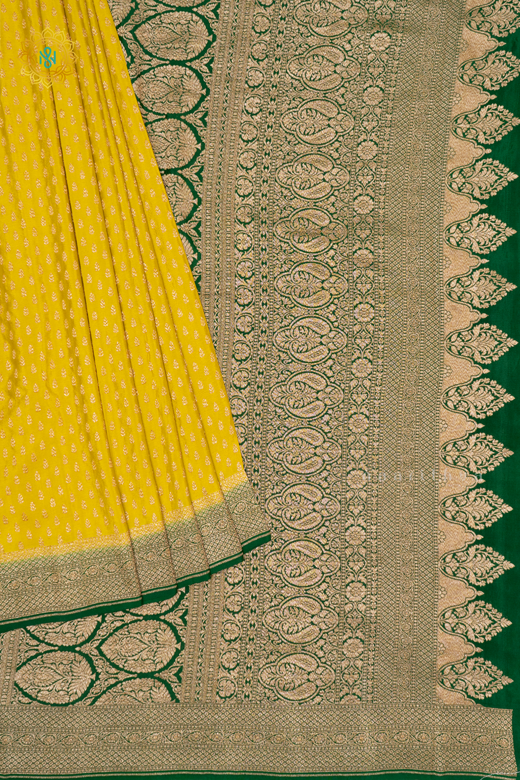 LEMON YELLOW WITH GREEN - PURE BANARASI CREPE SILK
