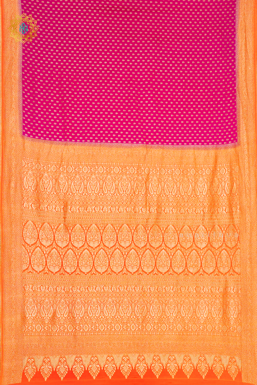 PINK WITH ORANGE - PURE BANARASI CREPE SILK