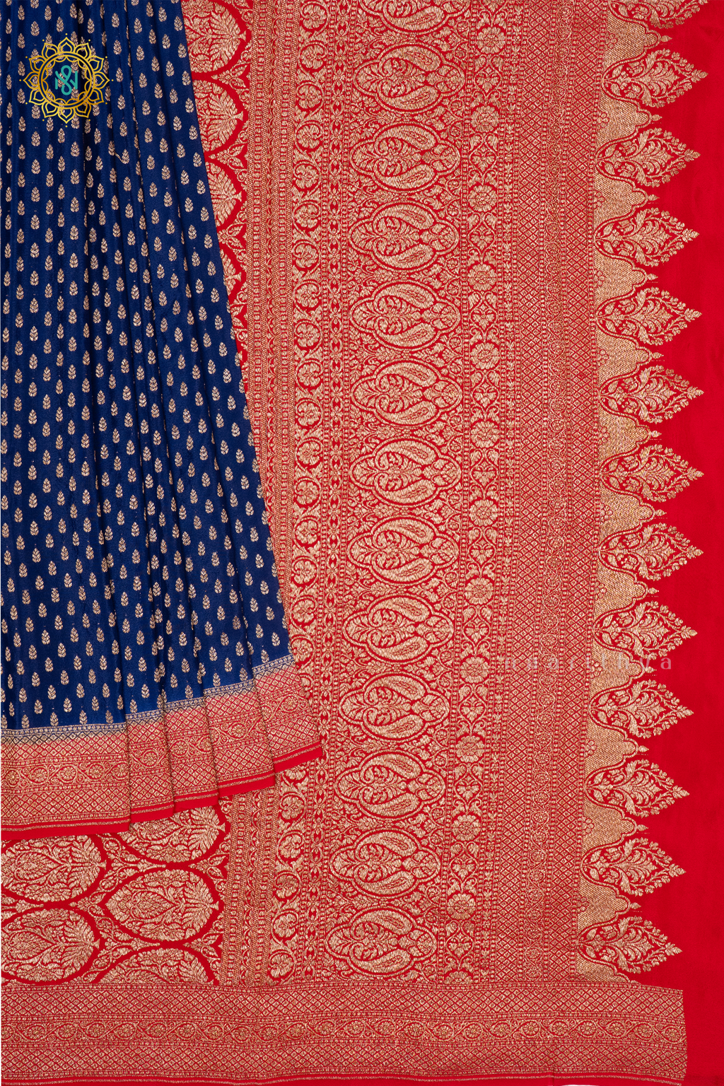 BLUE WITH RED - PURE BANARASI CREPE SILK