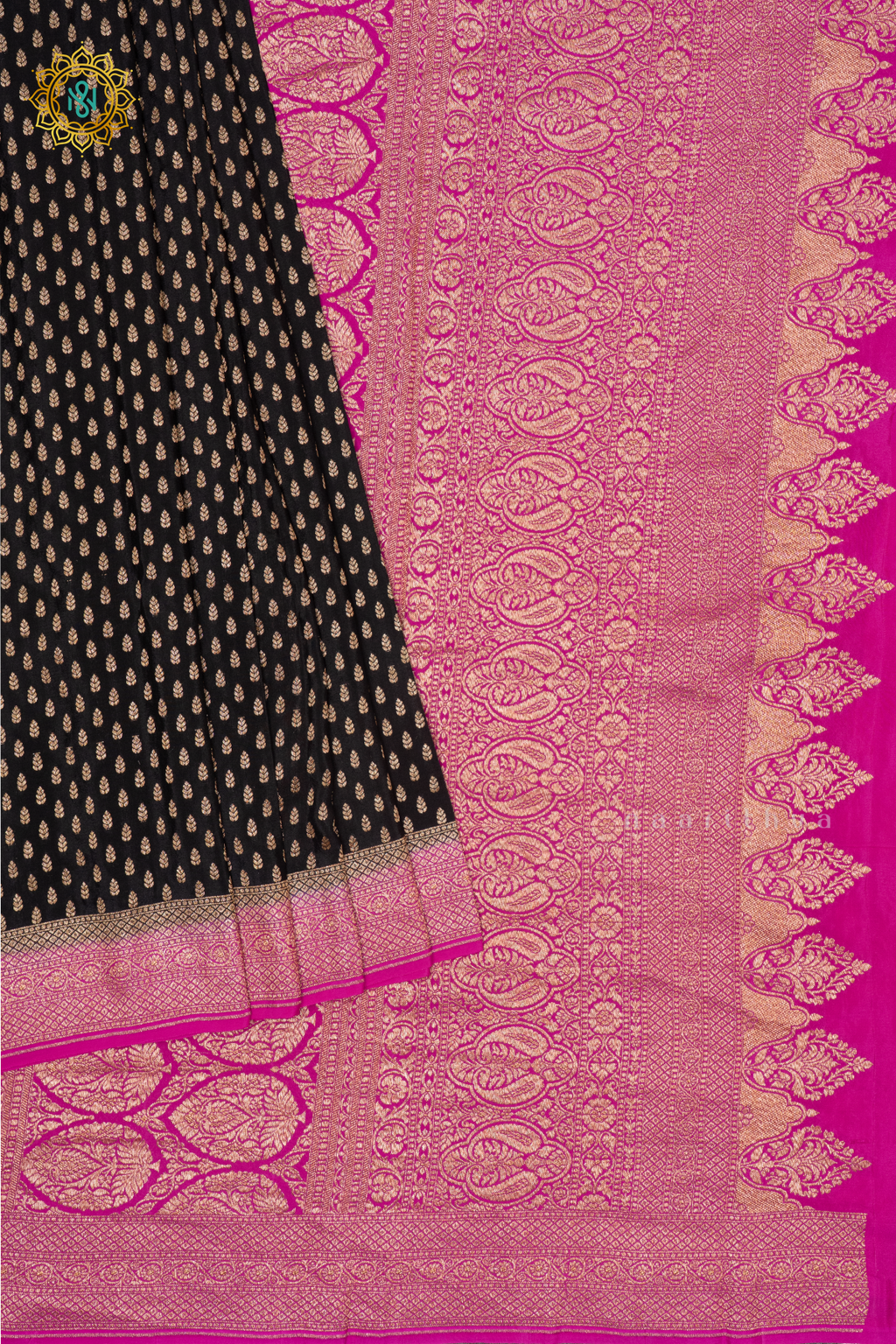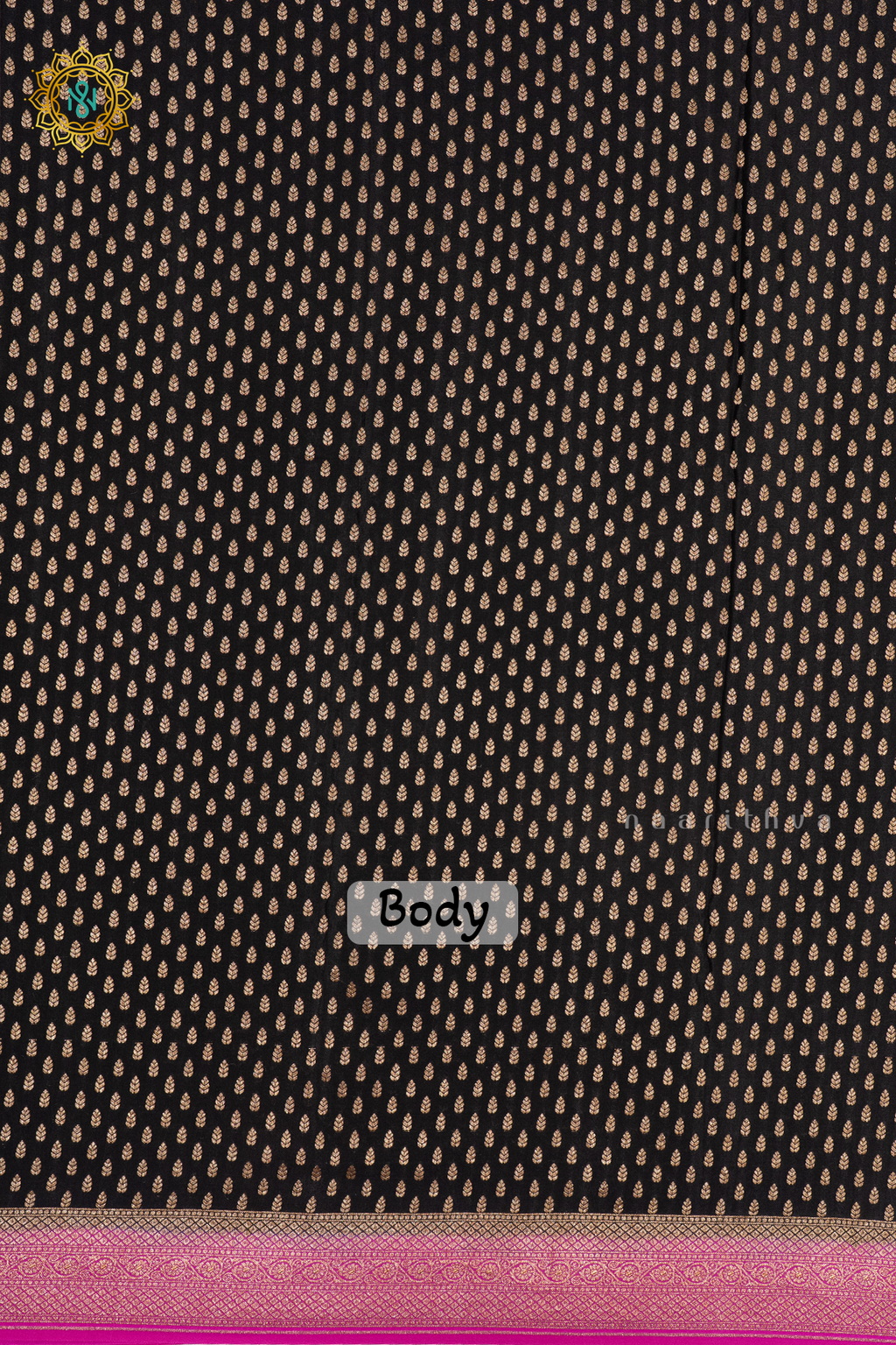 BLACK WITH PINK - PURE BANARASI CREPE SILK