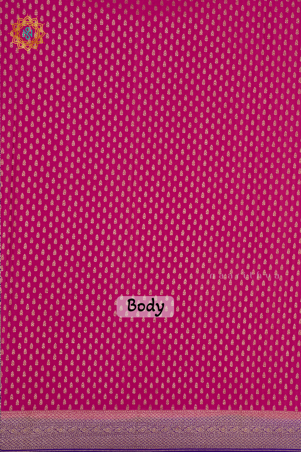 • Design : Zari Buttas On the Body With Contrast Zari Border, Pallu & Blouse