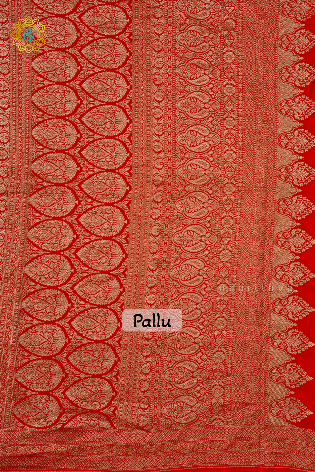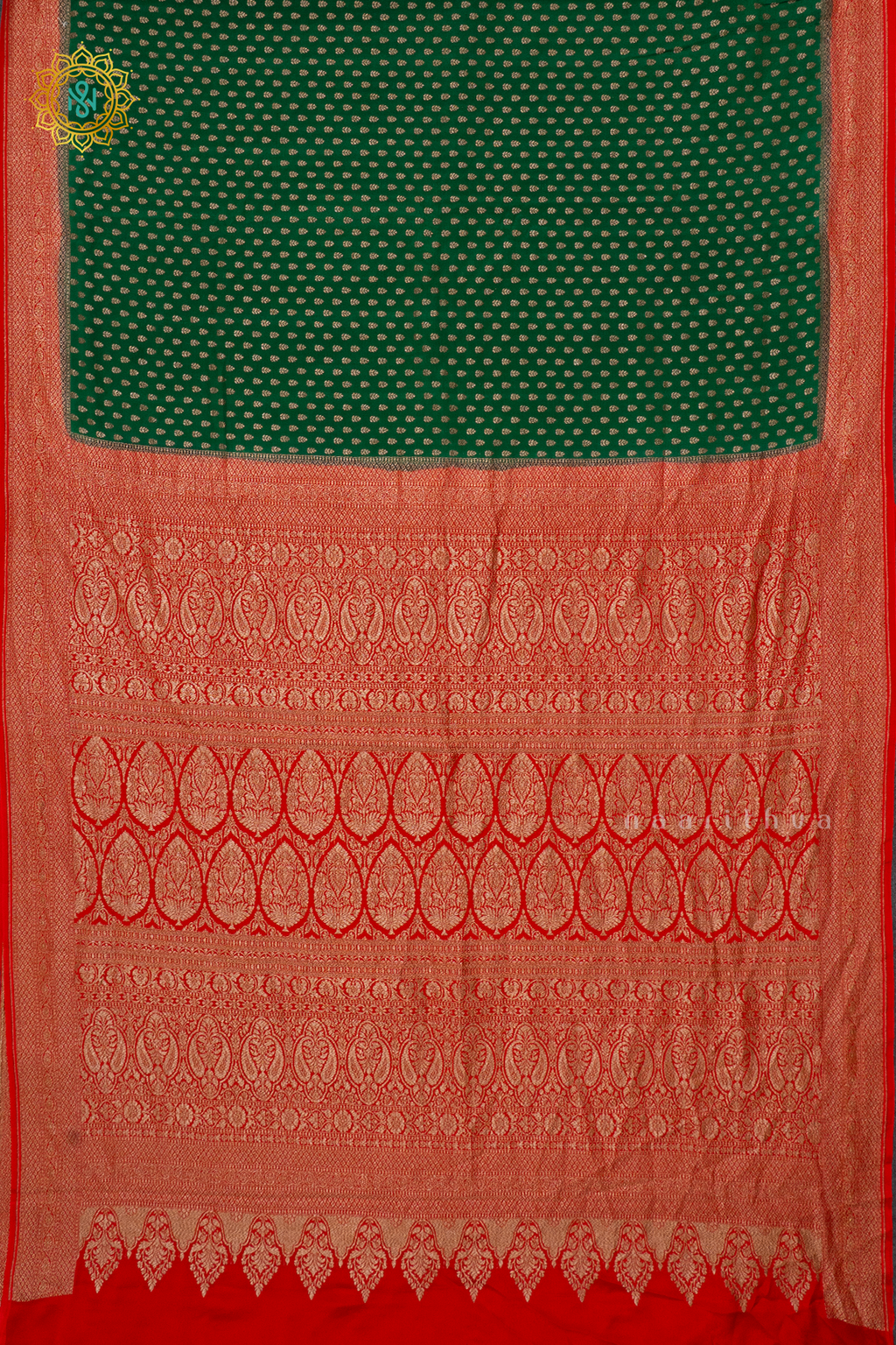 GREEN WITH RED - PURE BANARASI CREPE SILK