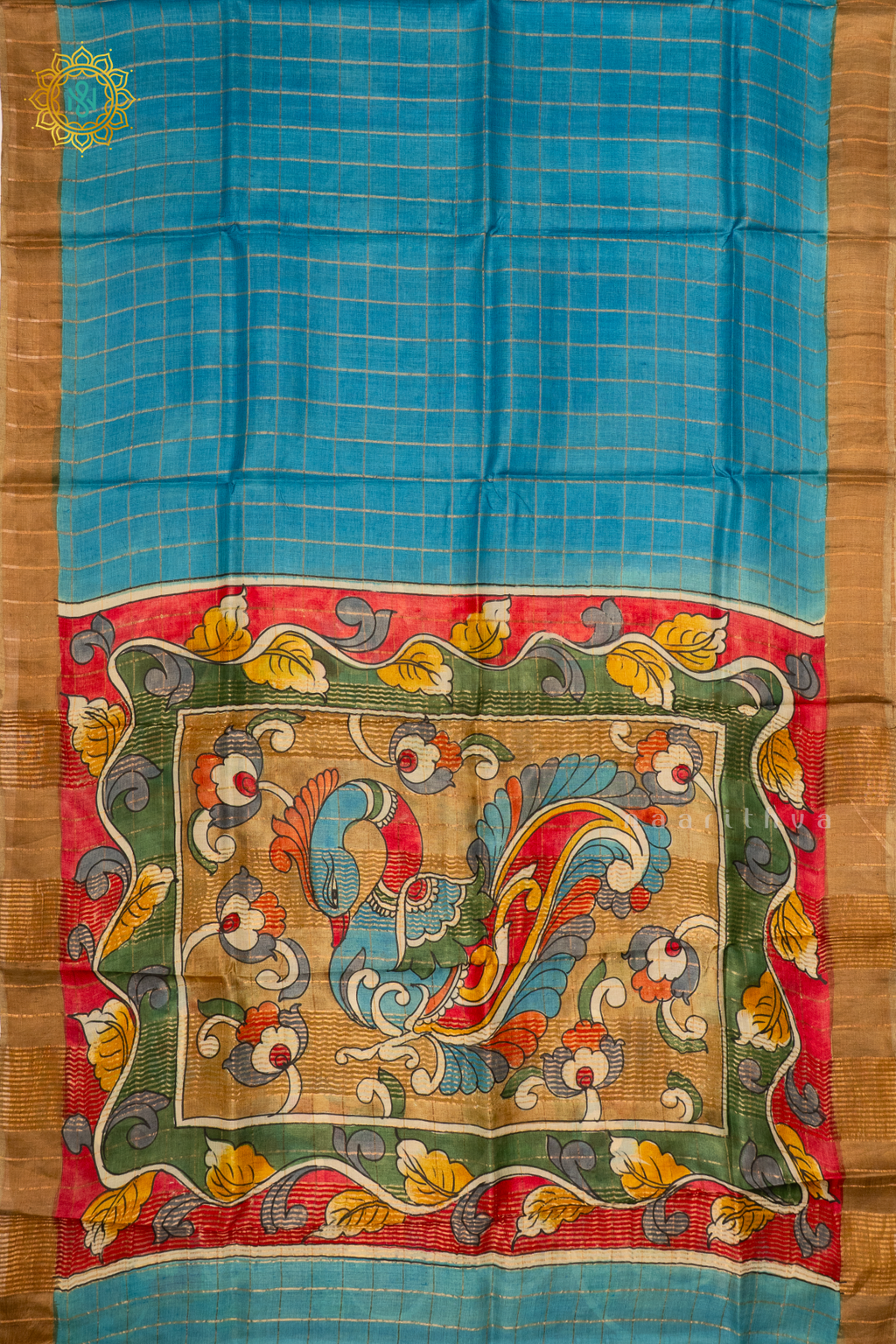• Design : Checks Body With Contrast Tissue Border, Hand Painted Kalamkari Pallu & Blouse