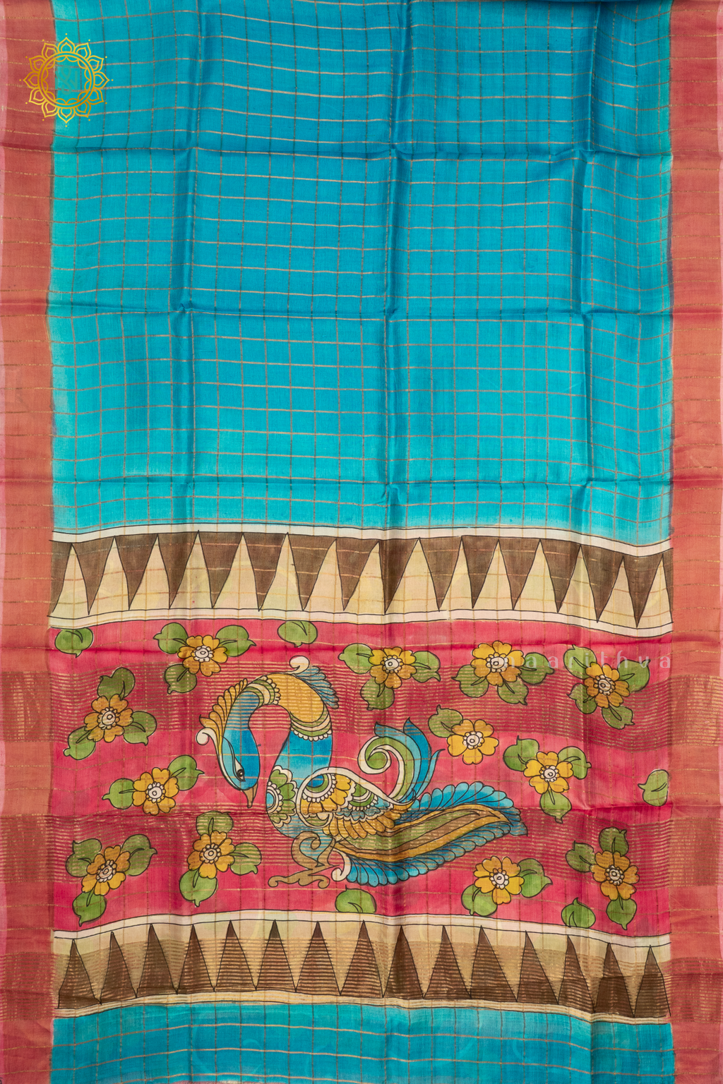 SKY BLUE WITH PEACH - PURE TUSSAR SILK