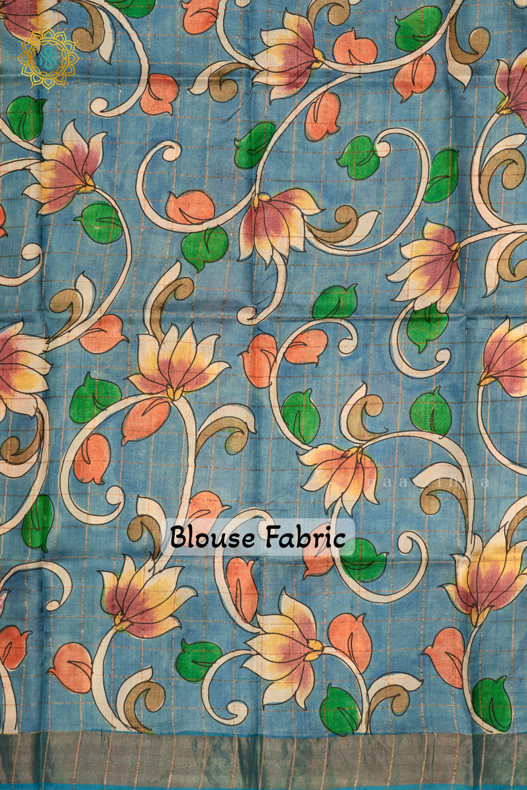 • Design : Checks Body With Contrast Tissue Border, Hand Painted Kalamkari Pallu & Blouse