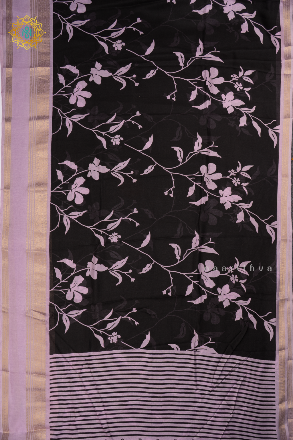 BLACK WITH LAVENDER - SEMI GEORGETTE