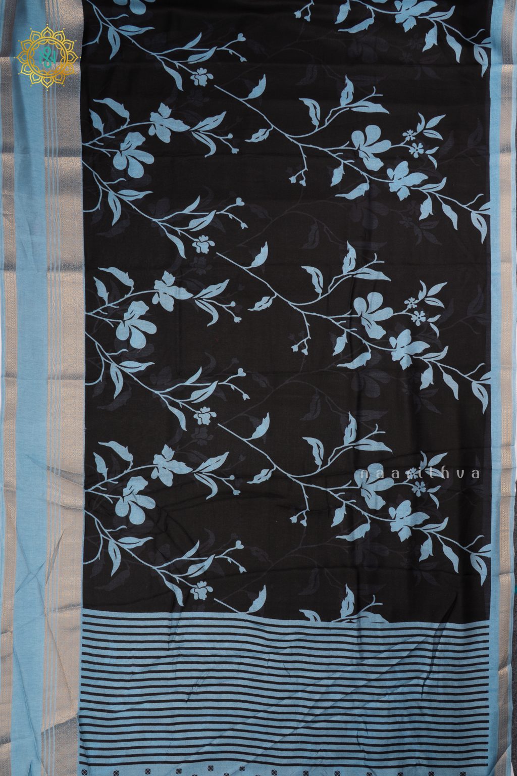 BLACK WITH BLUE - SEMI GEORGETTE