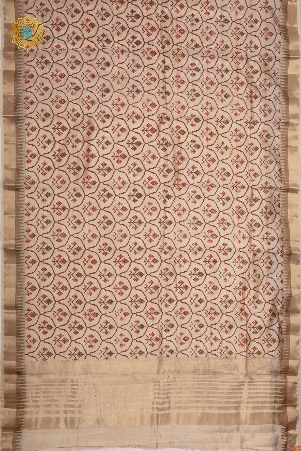 • Design : Printed Body With Zari Border, Pallu & Blouse