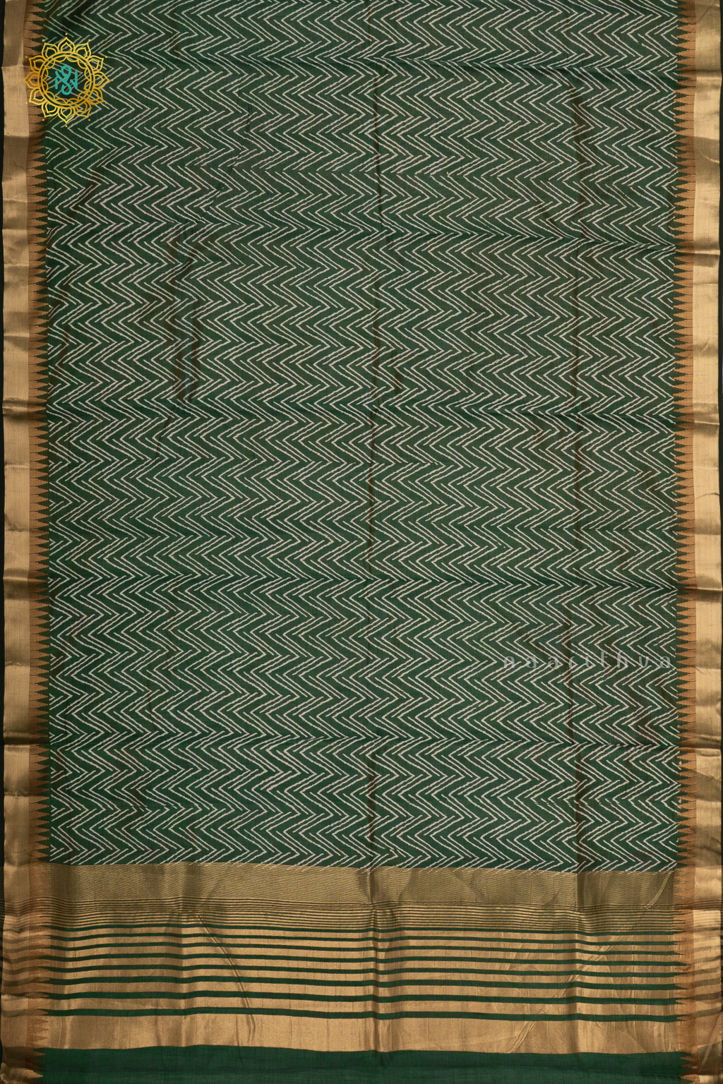 • Design : Printed Body With Zari Border, Pallu & Blouse