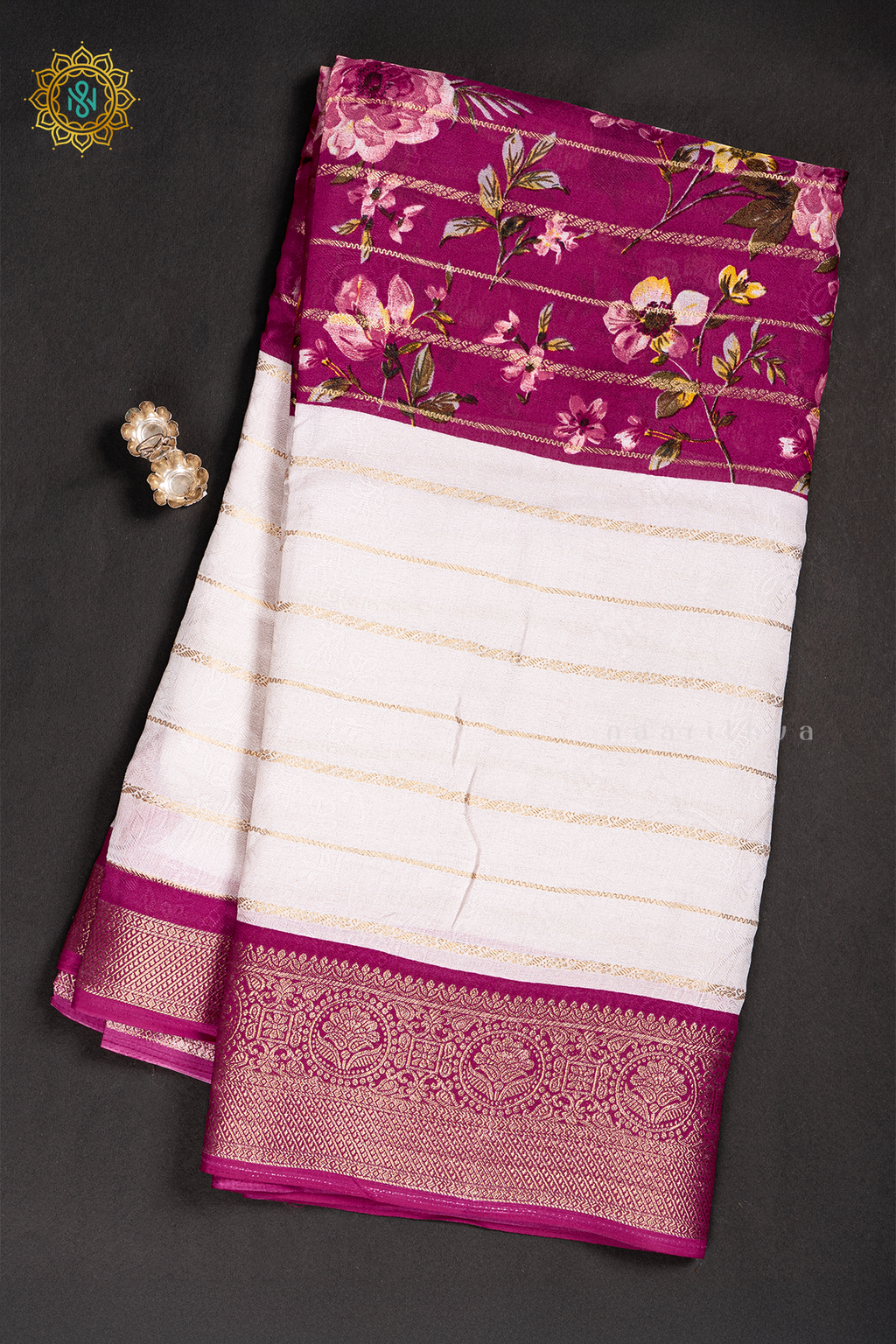OFF WHITE WITH PINK - SEMI GEORGETTE