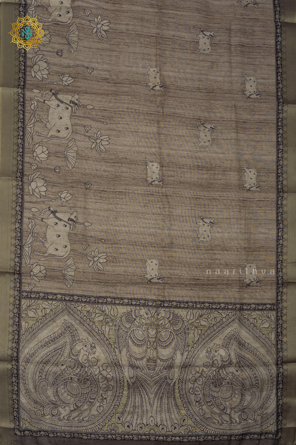 • Design : Printed Body With Zari Border, Pallu & Blouse
