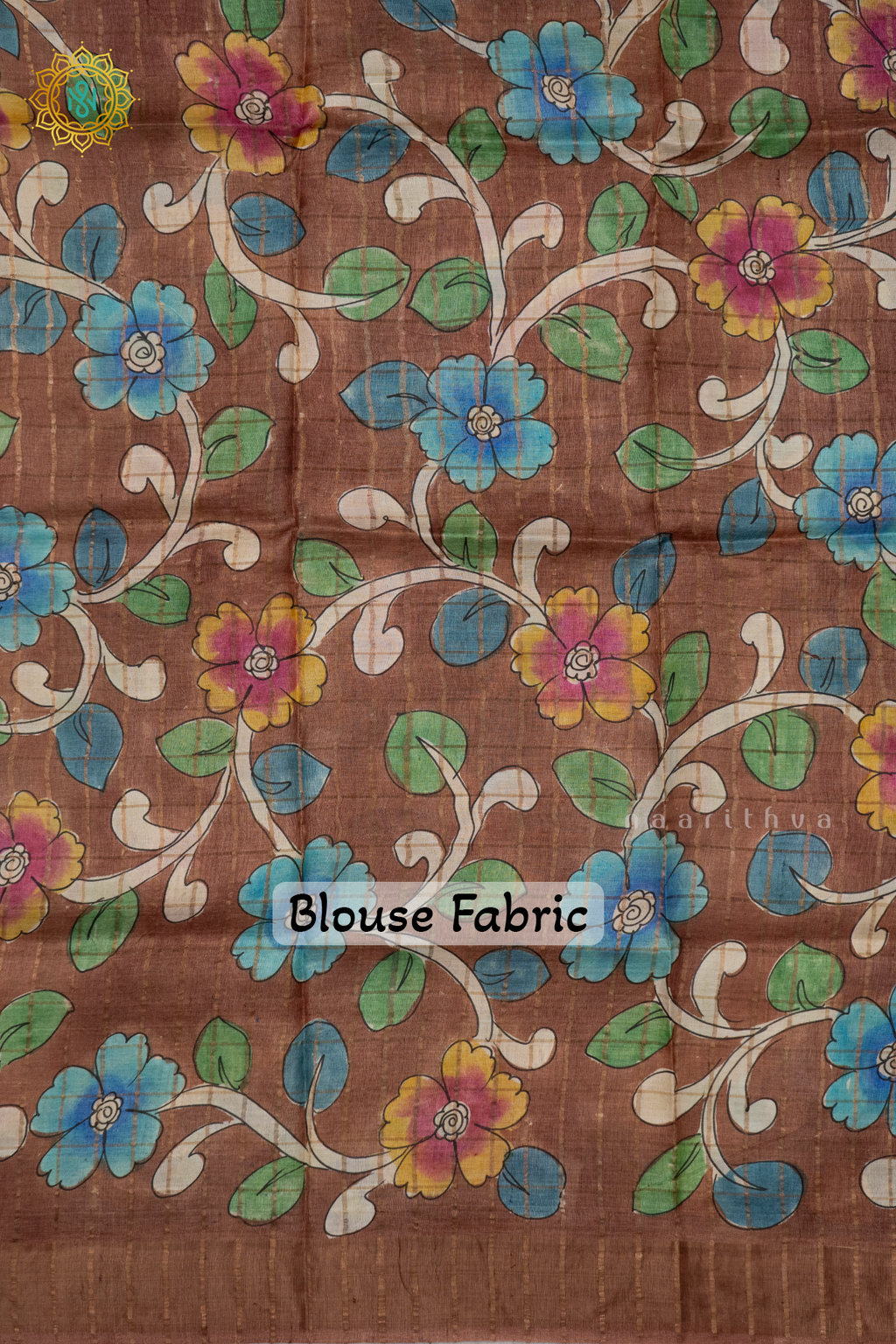 MUSTARD WITH BROWN - PURE TUSSAR SILK