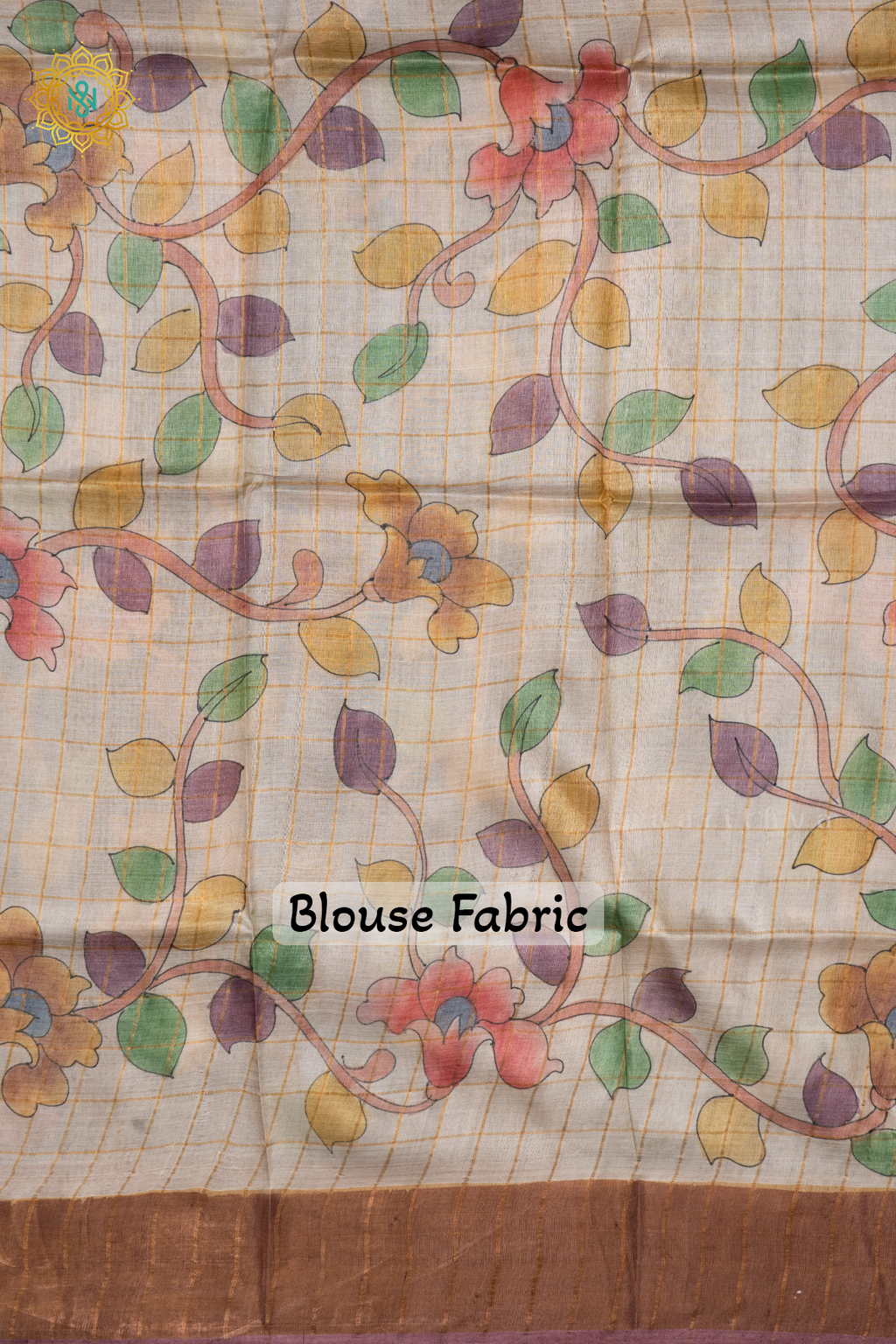 • Design : Checks Body With Contrast Tissue Border, Hand Painted Kalamkari Pallu & Blouse